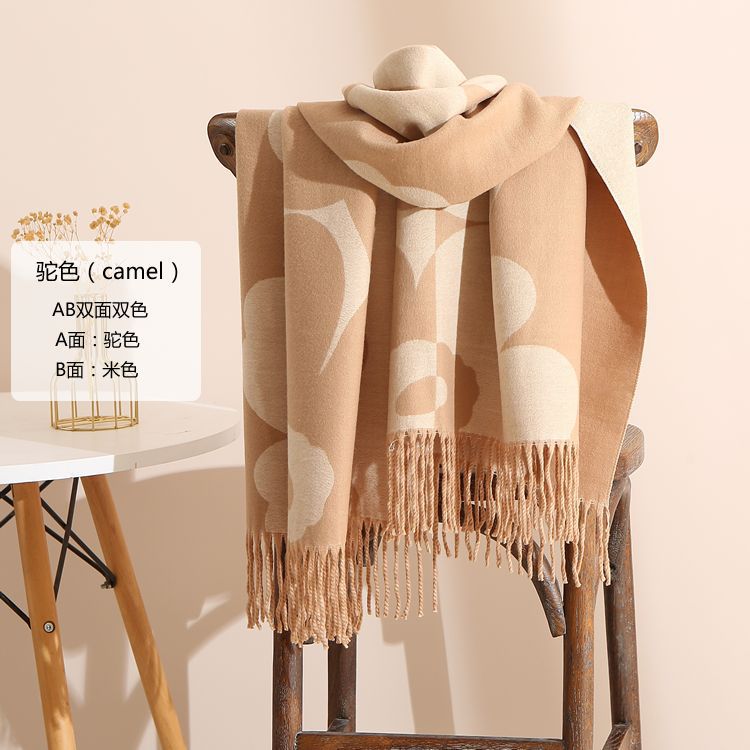 欧米風高級感のあるクローバー柄高級カシミヤ風生地生放送人気商品カシミヤスカーフ両面秋冬ネックウォーマー保温