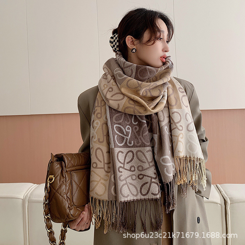 秋冬用レタードレス風カシミヤ風ジャカード厚手スカーフ織り大判ショール防風保温ネックウォーマー女性用レタードレス風ジャカード