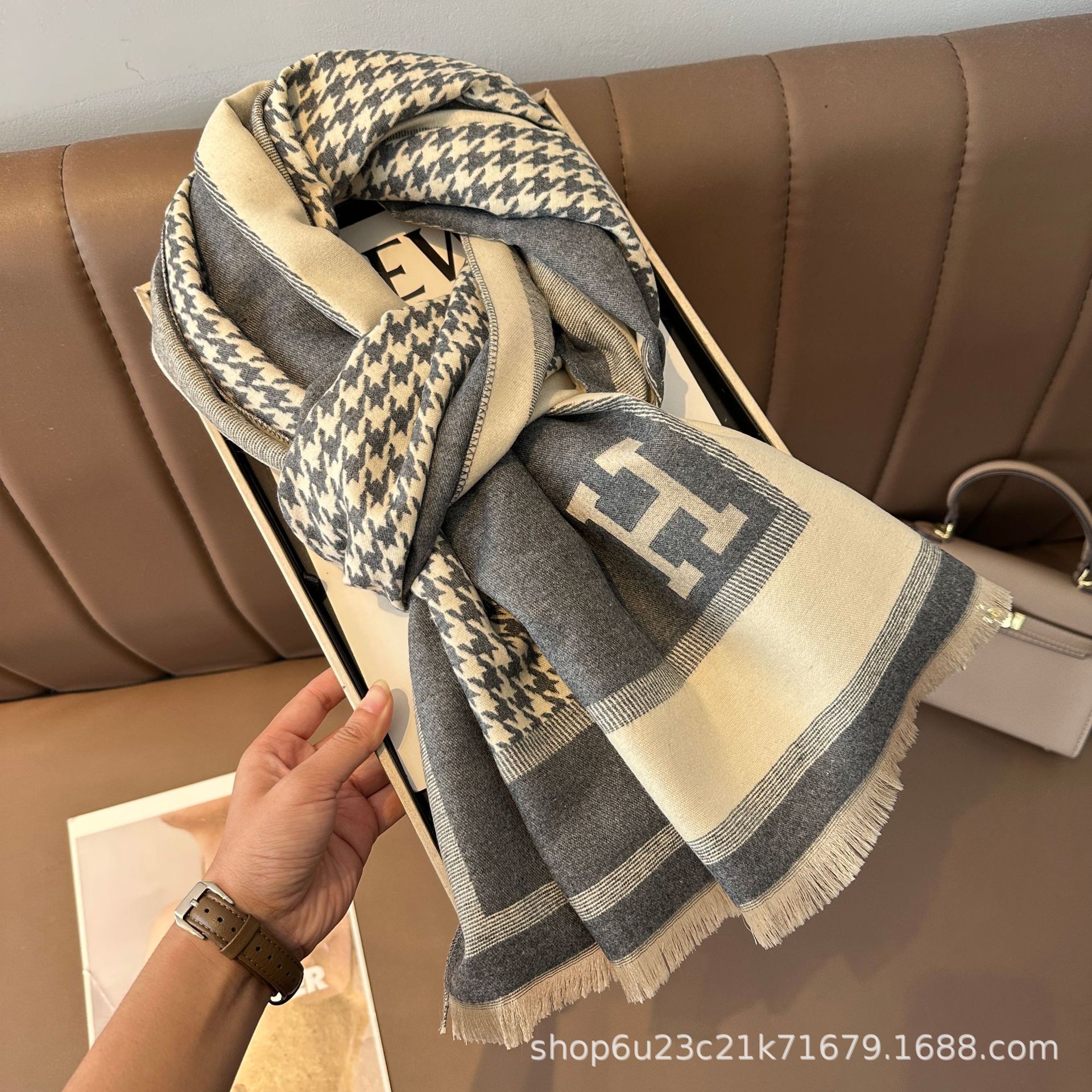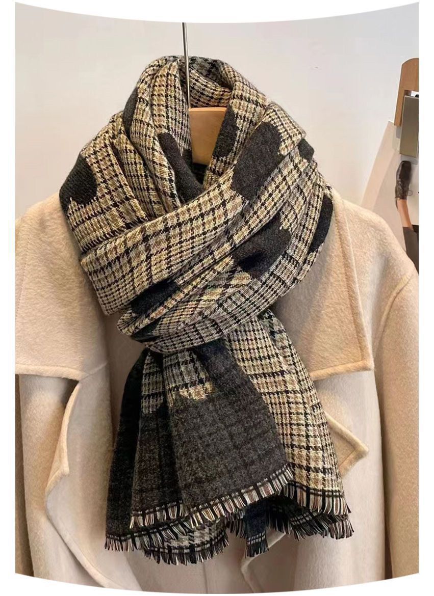 シンプルな千鳥格子柄スカーフ レディース 秋冬新作 多用途 軽い高級感 長め 厚手 イミテーションカシミヤ 暖かいショール ネックウォーマー