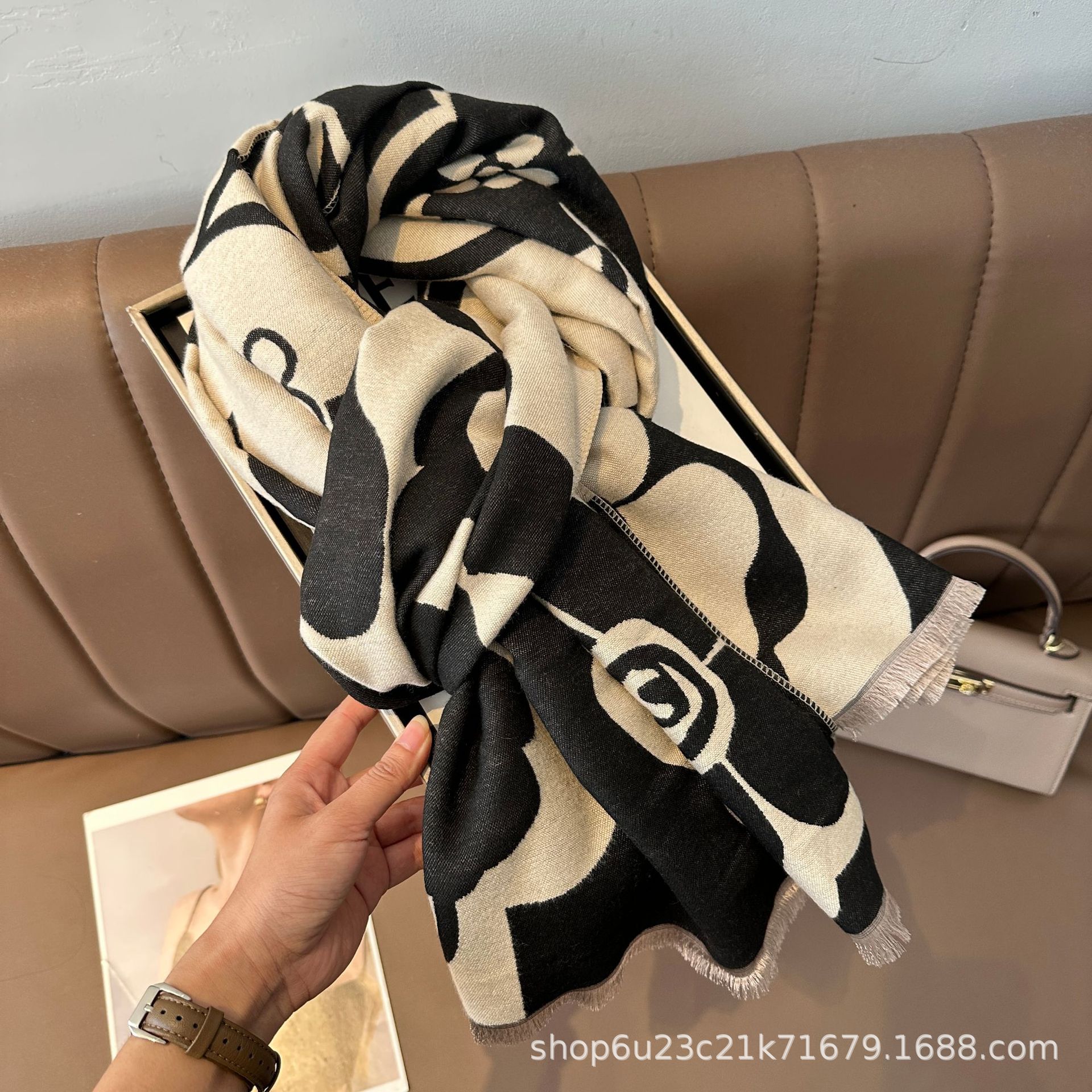 2025年 クロスボーダー風 香水のような香りのスカーフ 軽やかな高級感 秋冬ショール 新作 高級感あふれる万能 白黒 保温ネックウォーマー