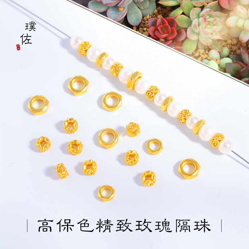 保色アメリカ輸入18k包金玉隔珠散珠金玉ブレスレット手串diy部品男型レディース