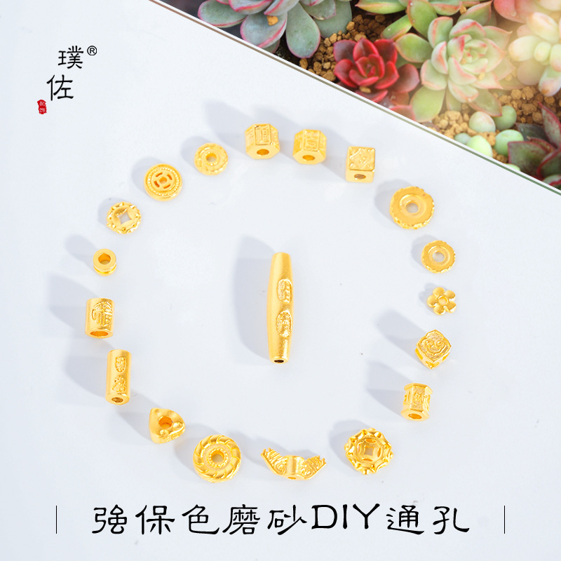 久しく色落ちしない砂砂金diy部品平安招財吉福六字真言方珠直管通孔ブレスレット