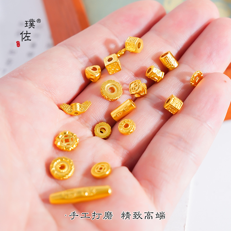 璞佐强保色古法沙金diy配件祥云金刚杵葫芦手链项链文玩隔珠串珠