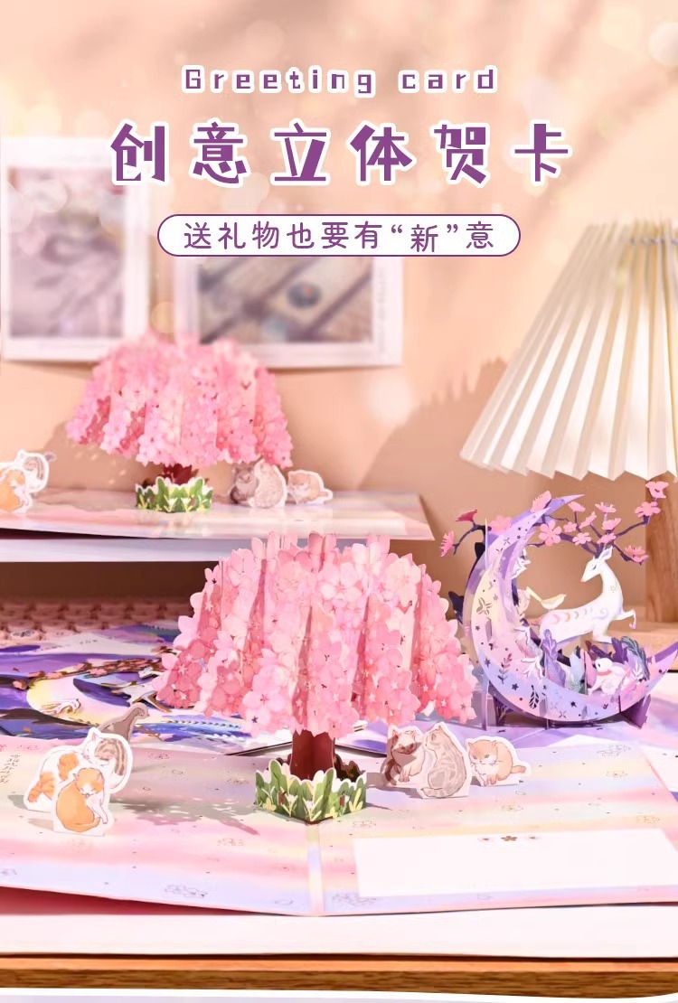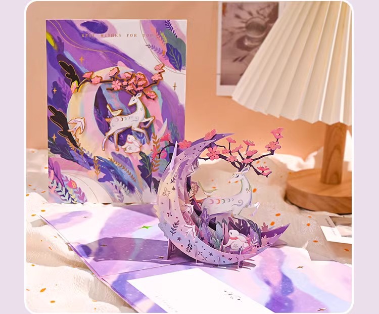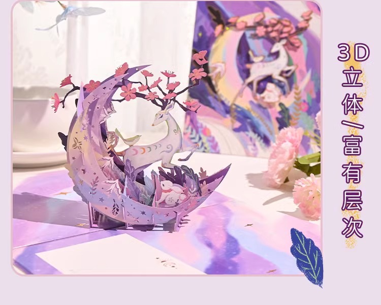 月照鹿栖立体グリーティングカード創意3dカード誕生日おめでとうございます。