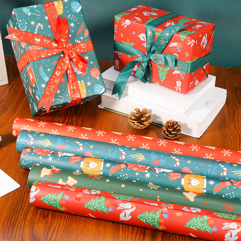 メーカー現物卸売りクリスマス包装紙クリスマスギフトボックス包装紙両面カラープリント花束包装紙