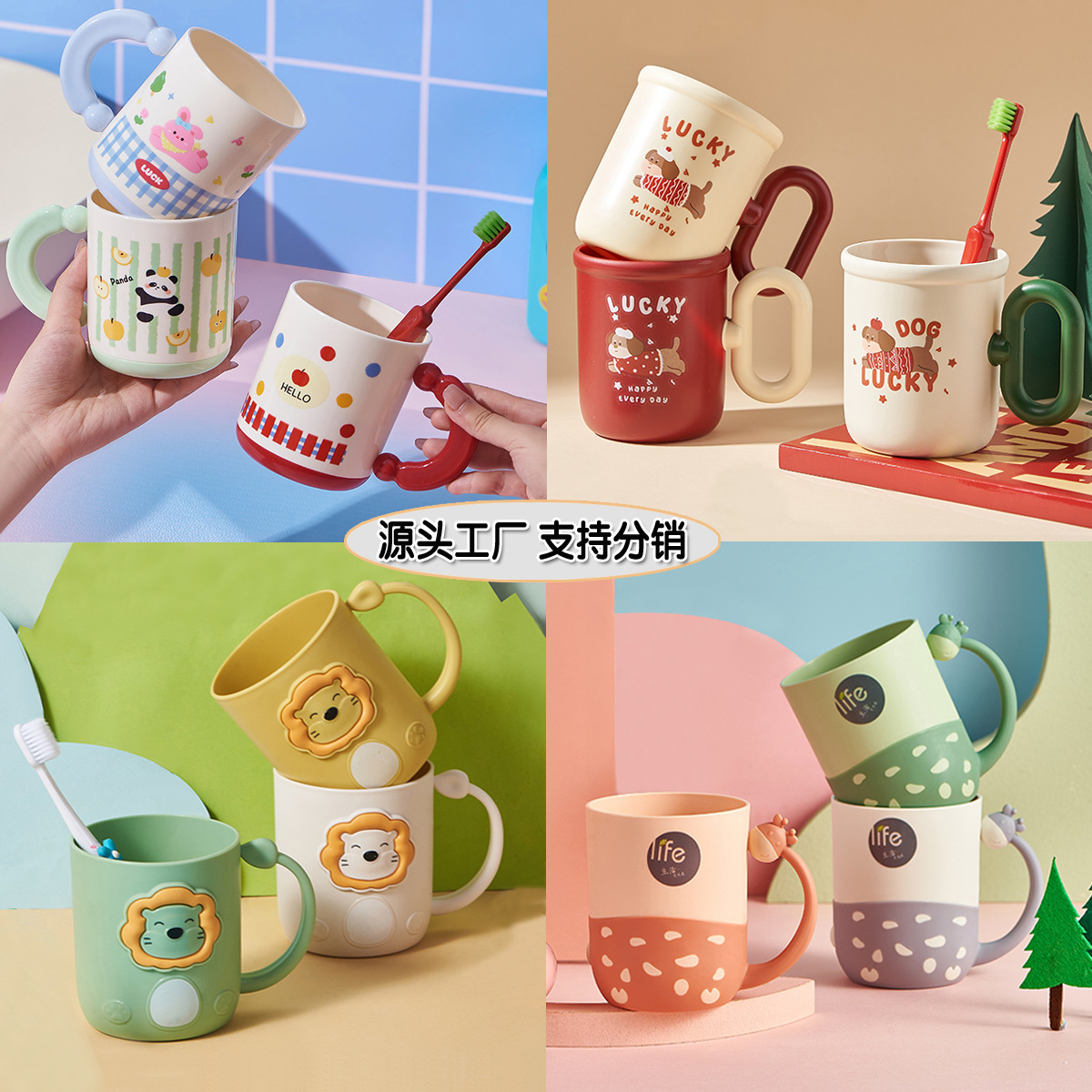 塑料漱口杯简约家用洗漱杯情侣洗漱杯卡通可爱加厚牙刷杯带手柄