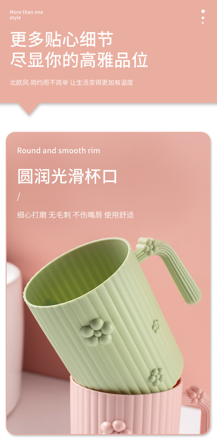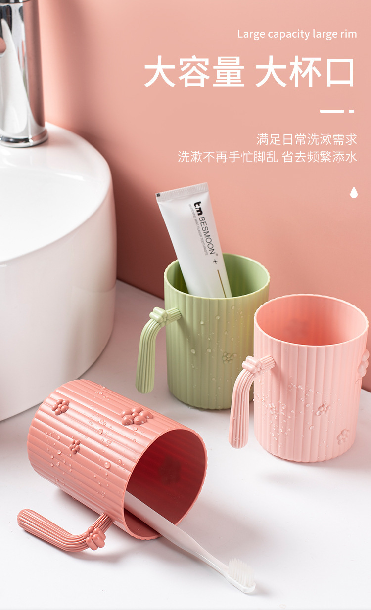 シンプルで可愛いプラスチック製歯ブラシカップ、家庭用厚手歯磨きカップ、卸売、取っ手付き高級感のあるうがいコップ