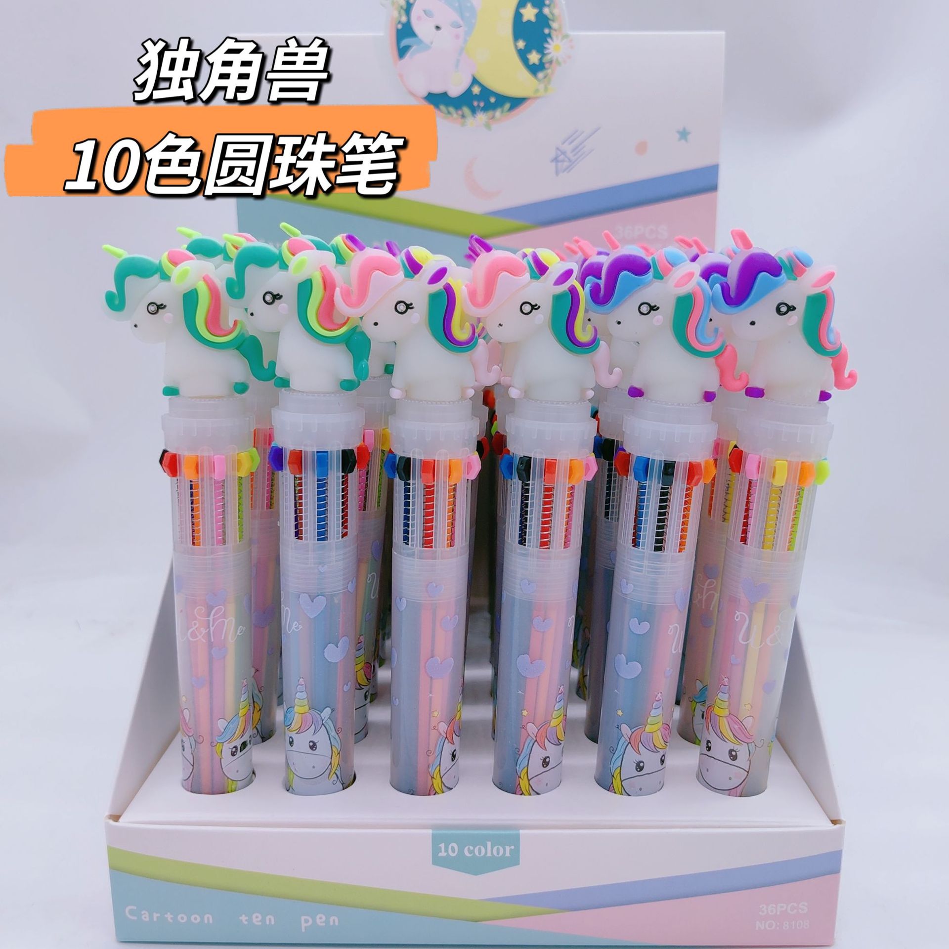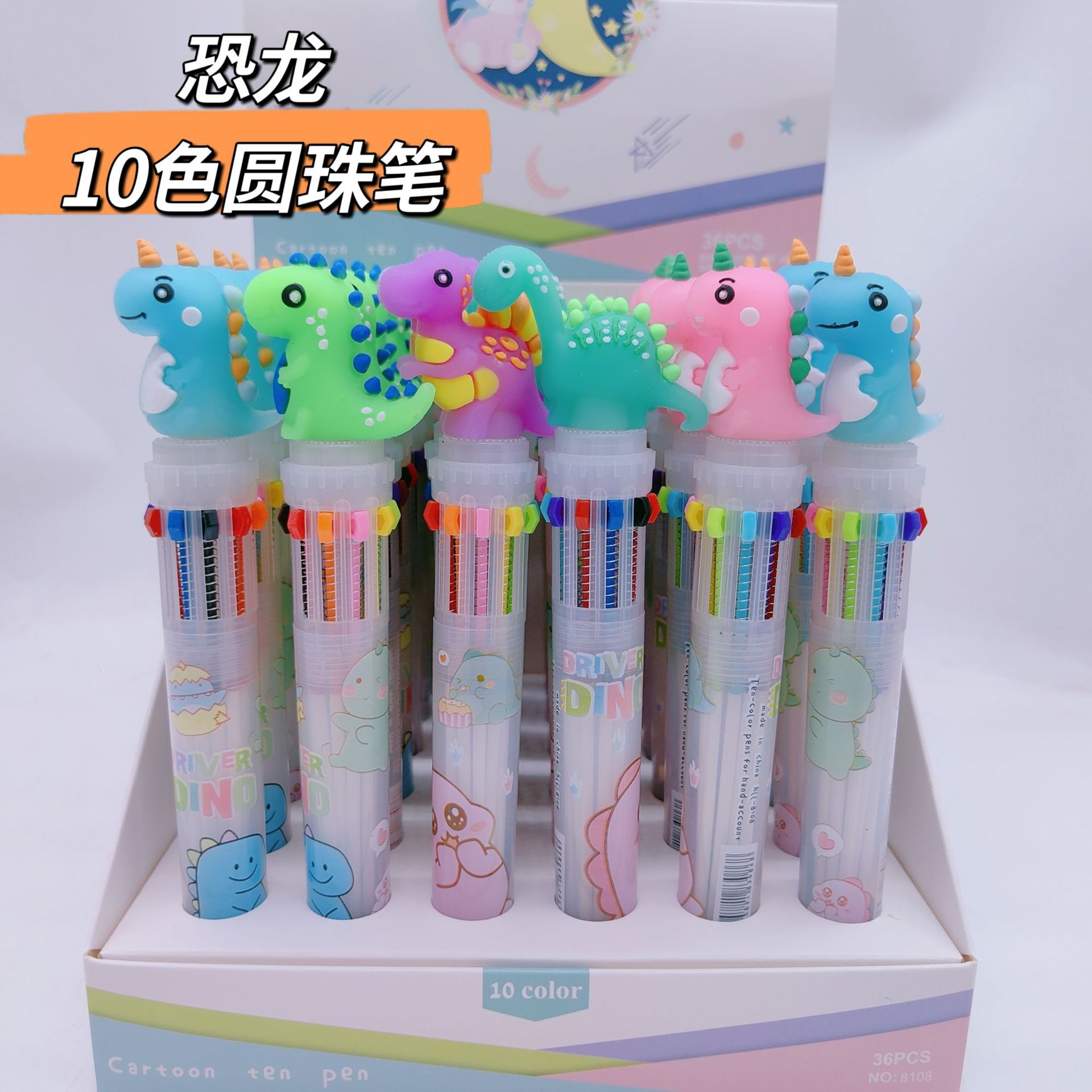 クリエイティブ多色ボールペン6色/10色かわいいアニメ動物モデル学生文房具多機能押しオイルペン