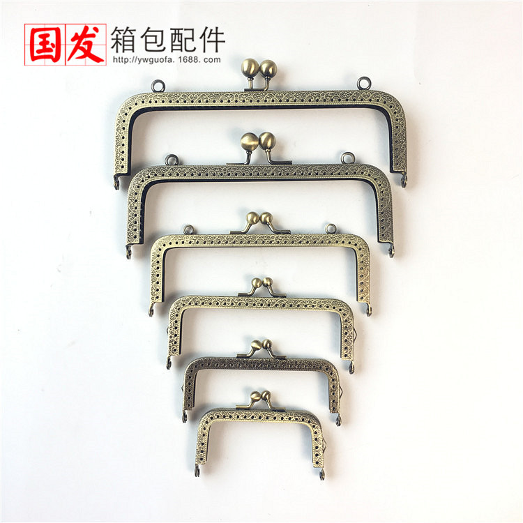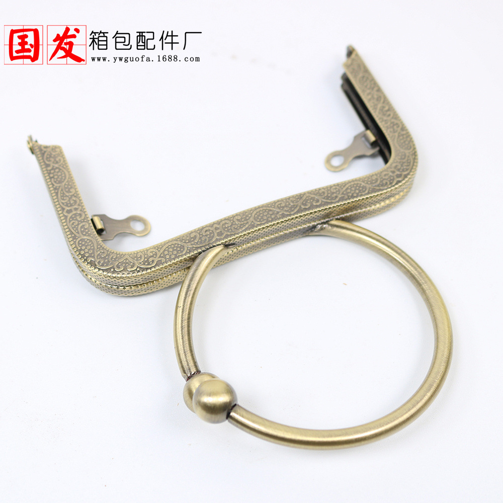 ネジ穴あり25*7.5cm角型エンボス玉口金古銅口金バッグアクセサリー