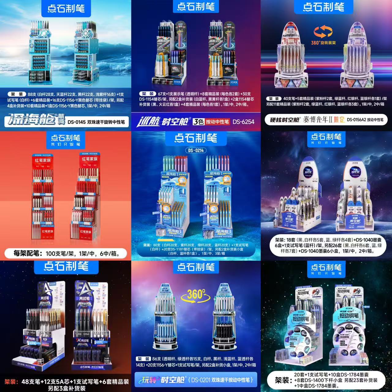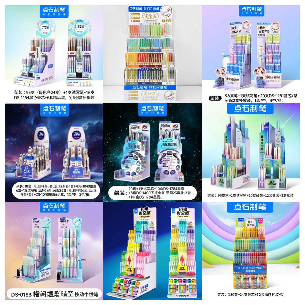 DS-0154 時空カプセルラック (ペン70本+お試しパック1本+プレミアムパック8セット+リフィル20本+ペン小箱4本),DS-0154G ドリームタイムアンドスペースキャビンセット [ペン135本+高品質パッケージ12セット+リフィル16本+テストペン1本],DS-0155 長祥時空カプセルラック (ペン 79 本 + トライアルペン 1 本 + プレミアムパック 5 個 + リフィル 24 個),DS—0157 ライトニング タイム カプセル—ラック マウント (第 3 版),DS-827-1 新ナショナルカラー ソフトペイントペン スタンドセット (ペン168本+12セット+追加8セット),DS-827-1 四季カラーソフトペンスタンドセット(ペン168本+12セット+追加8セット),DS—0194 ギャラクシー タイム キャビン—ラックマウント [ペン 132 本 + テスト ライティング ペン 1 本 + ブラック リフィル 16 本 + プレミアム パック 12 セット],DS-0171 オーロララック (72 本 + テストペン 1 本 + リフィル 18 本 + 小箱ペン 4 本),DS-0169 ゲルペンホルダー [ペン77本+テストペン1本+リフィル12本],DS-7158 スモールハッチペン(消せるブルー)スタンド [43セット+テストペン1本+インク袋小箱30本+替えグリップ8本],DS-7158 スモールハッチペン(黒芯)ラック[43セット+試し書きペン1本+インク袋小箱30本+交換用グリップ8本],DS-805S 厳選12色ラックセット(ペン180本+リフィル24本+3本12セット)