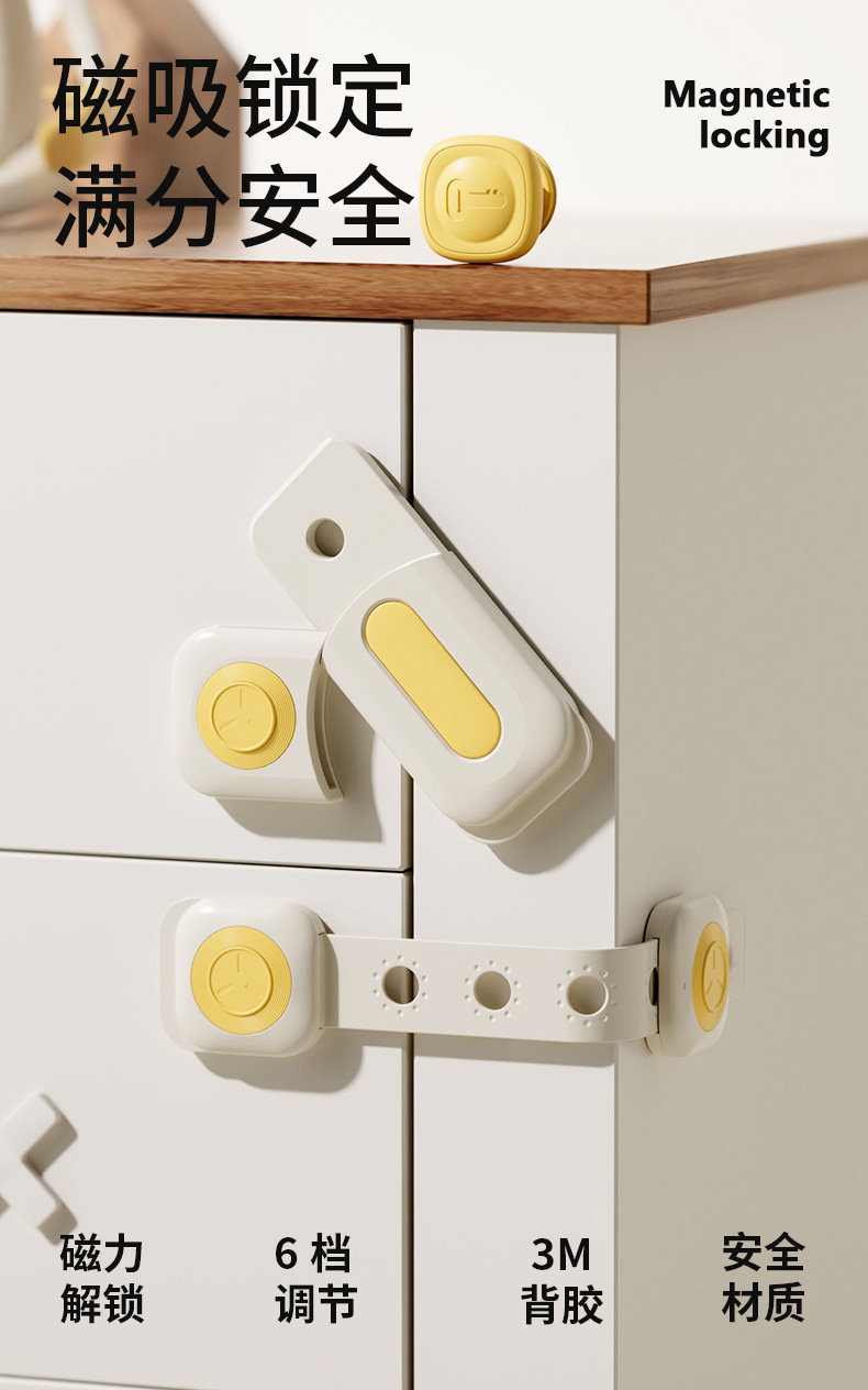 盾牌パパ子供用磁気開閉式ロングロック 家庭用キャビネット冷蔵庫トイレ穴あけ不要引き出しロック保護