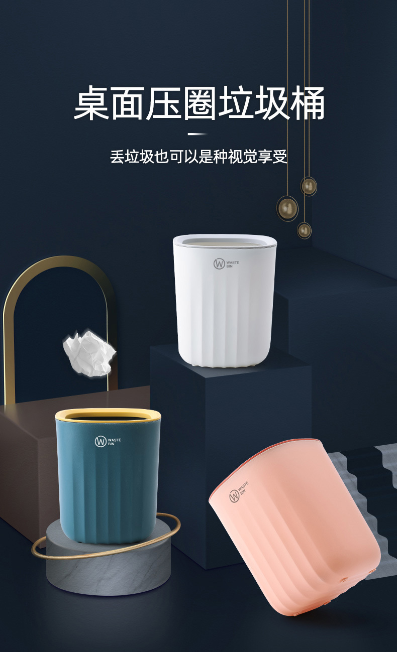 クリエイティブミニデスクトップゴミ箱蓋付き押圧式弾蓋収納桶家庭用机茶数収納清潔桶