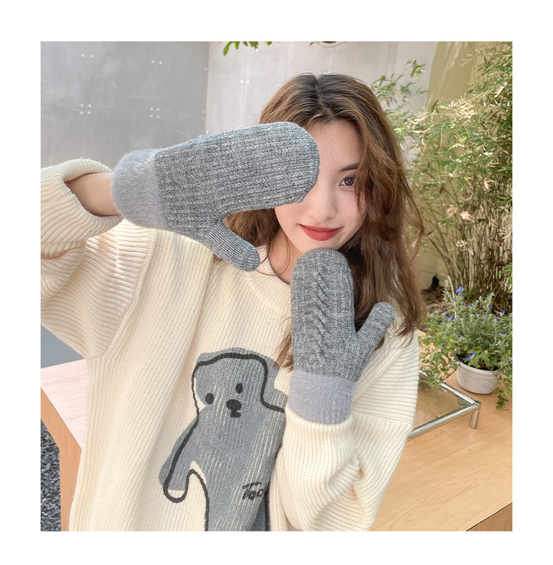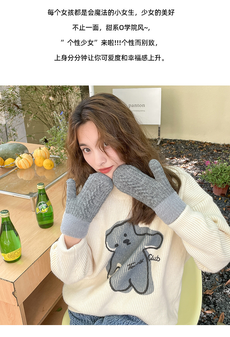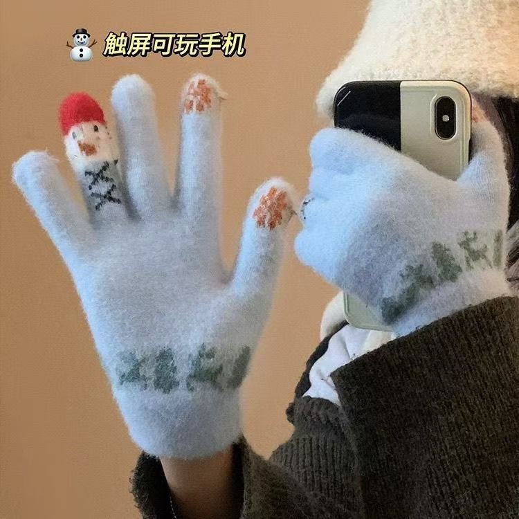 冬の新型ぬいぐるみ手袋自転車ニット手袋秋冬女子かわいい防寒タッチパネル学生保温手袋