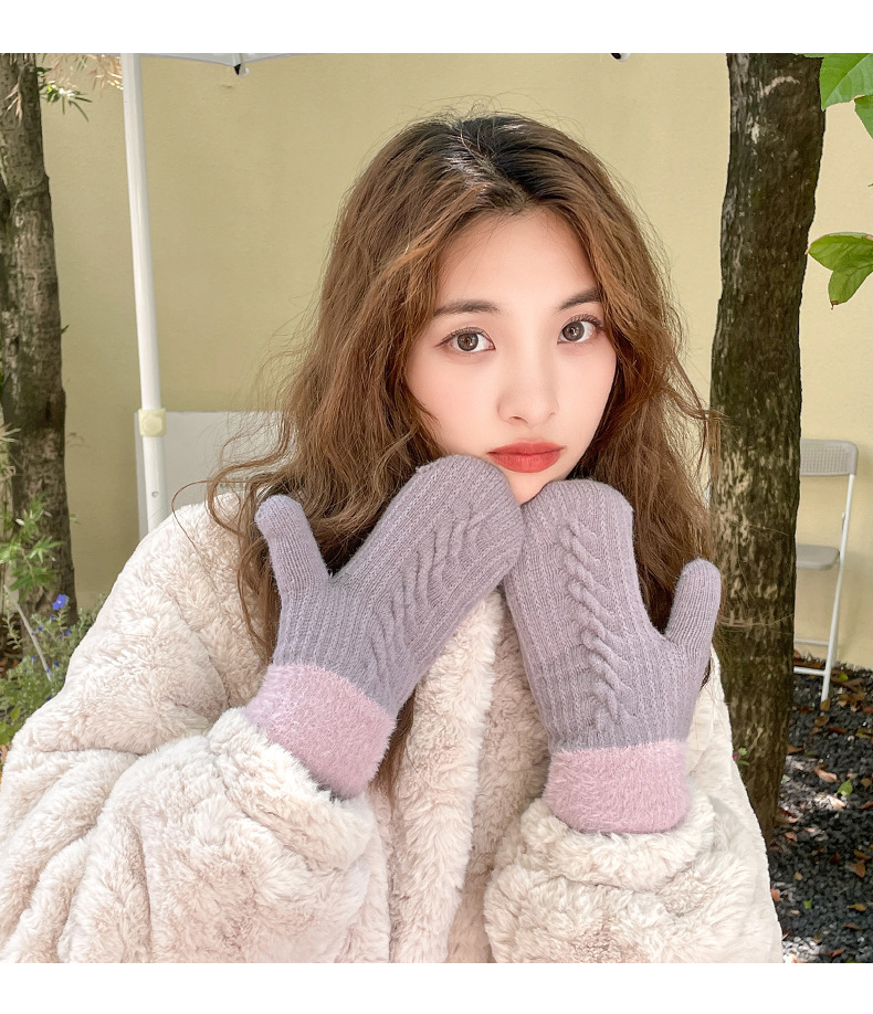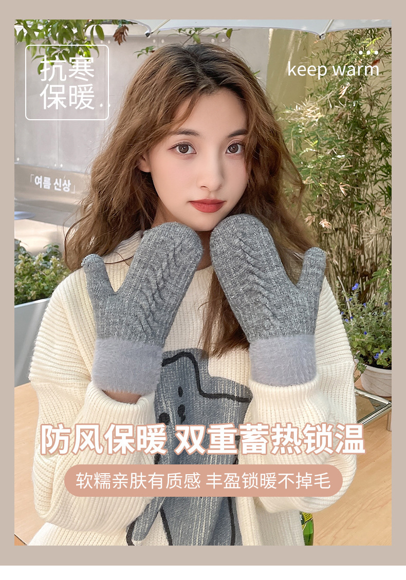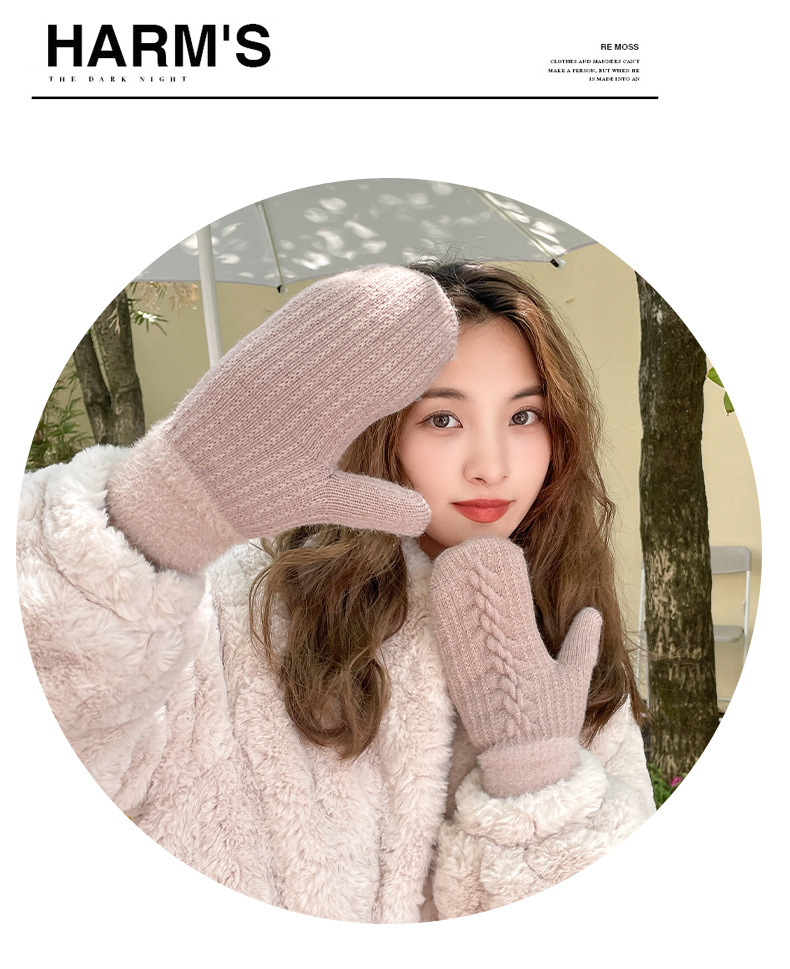 Ins糖豆韓国毛糸ニット手袋冬の女性の厚さはタッチパネルに触れることができます。