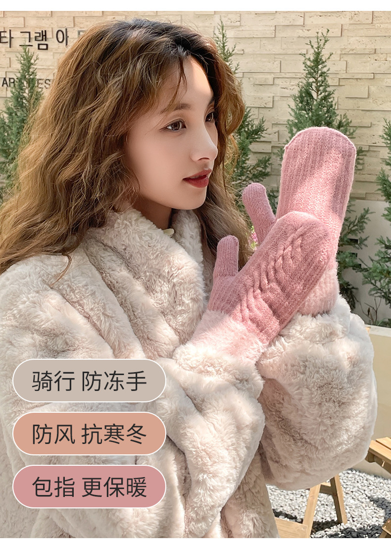 韓国ins小糖豆毛糸ニット手袋冬露指女純色保温防風自転車分指タッチパネル