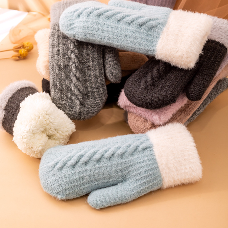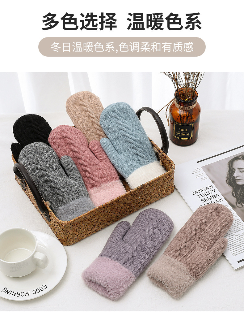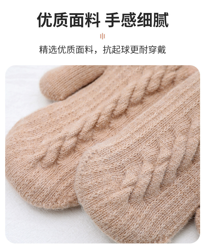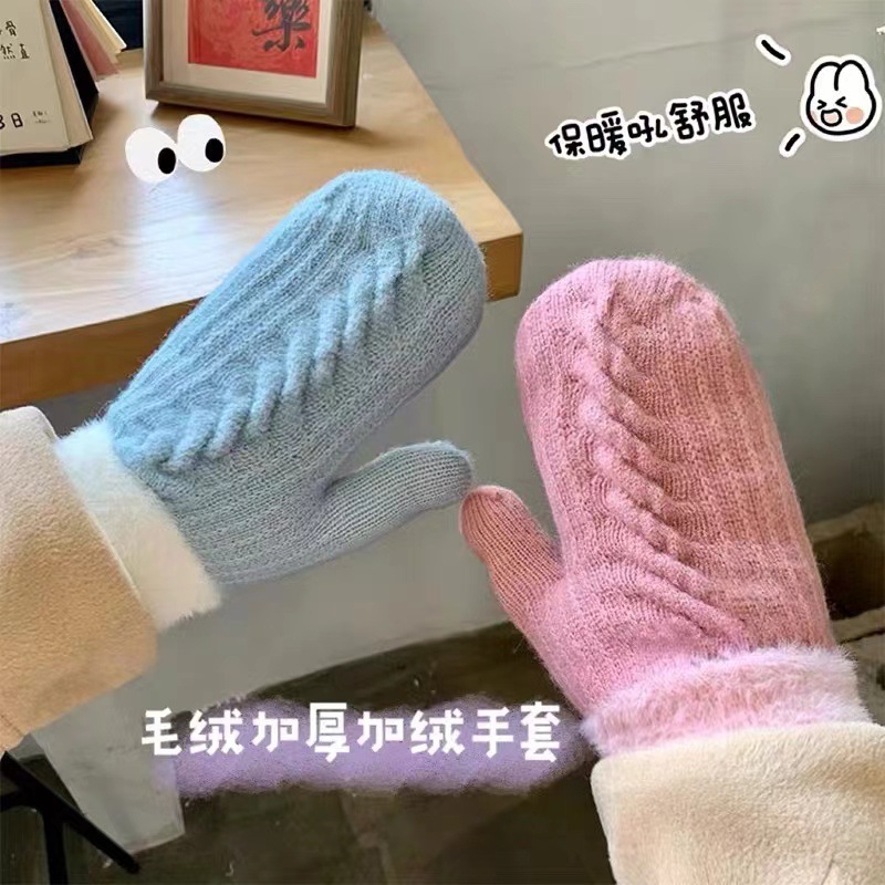 冬季加绒手套日系麻花针织保暖加厚仿羊绒女士连指手套百搭毛线
