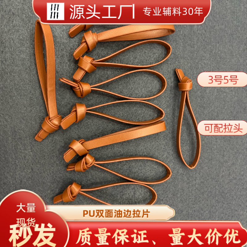 洋服鞄革プルタブ両面プルダウンpu革ストリップpu革プルダウンジッパー结び革ストリップ