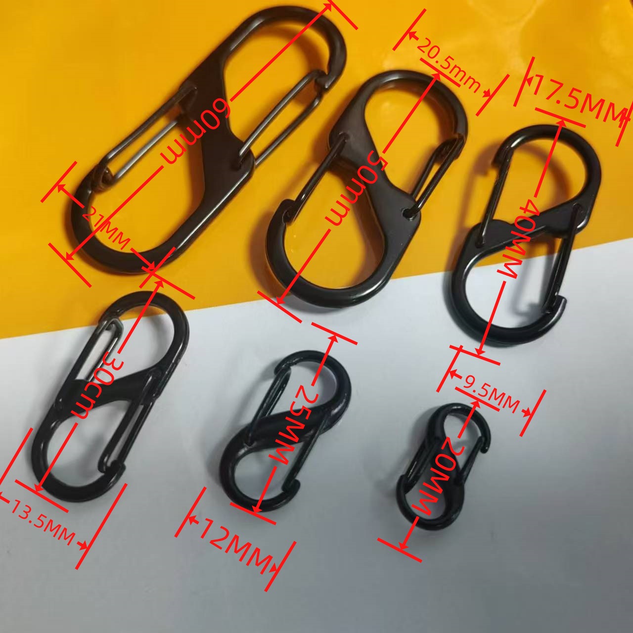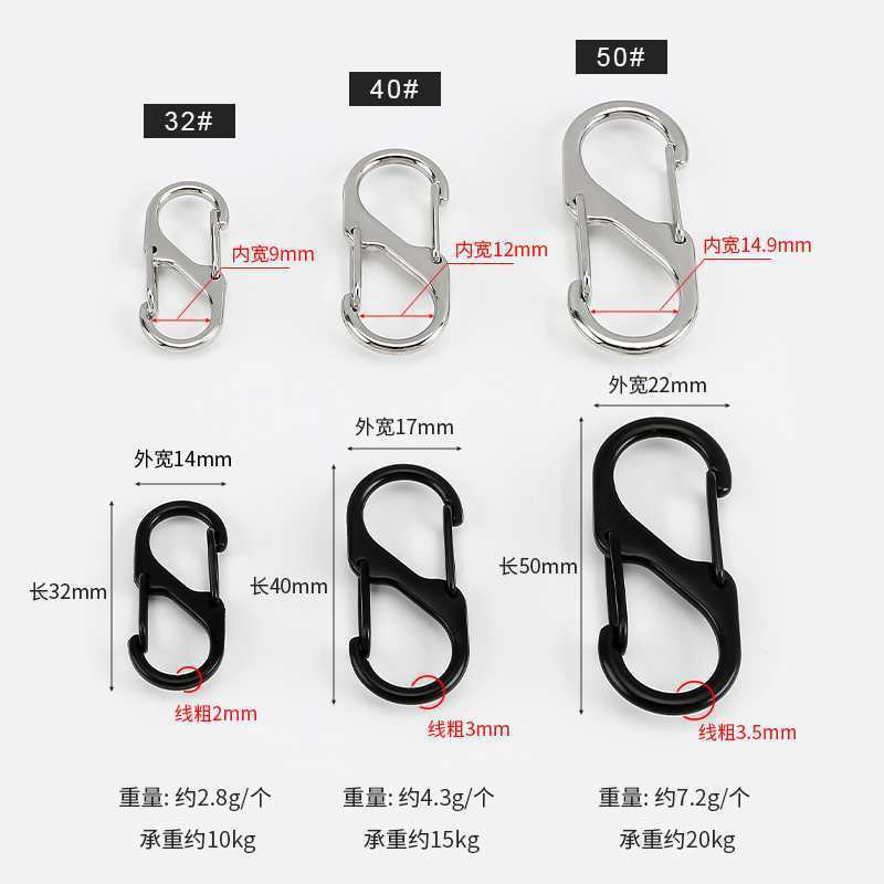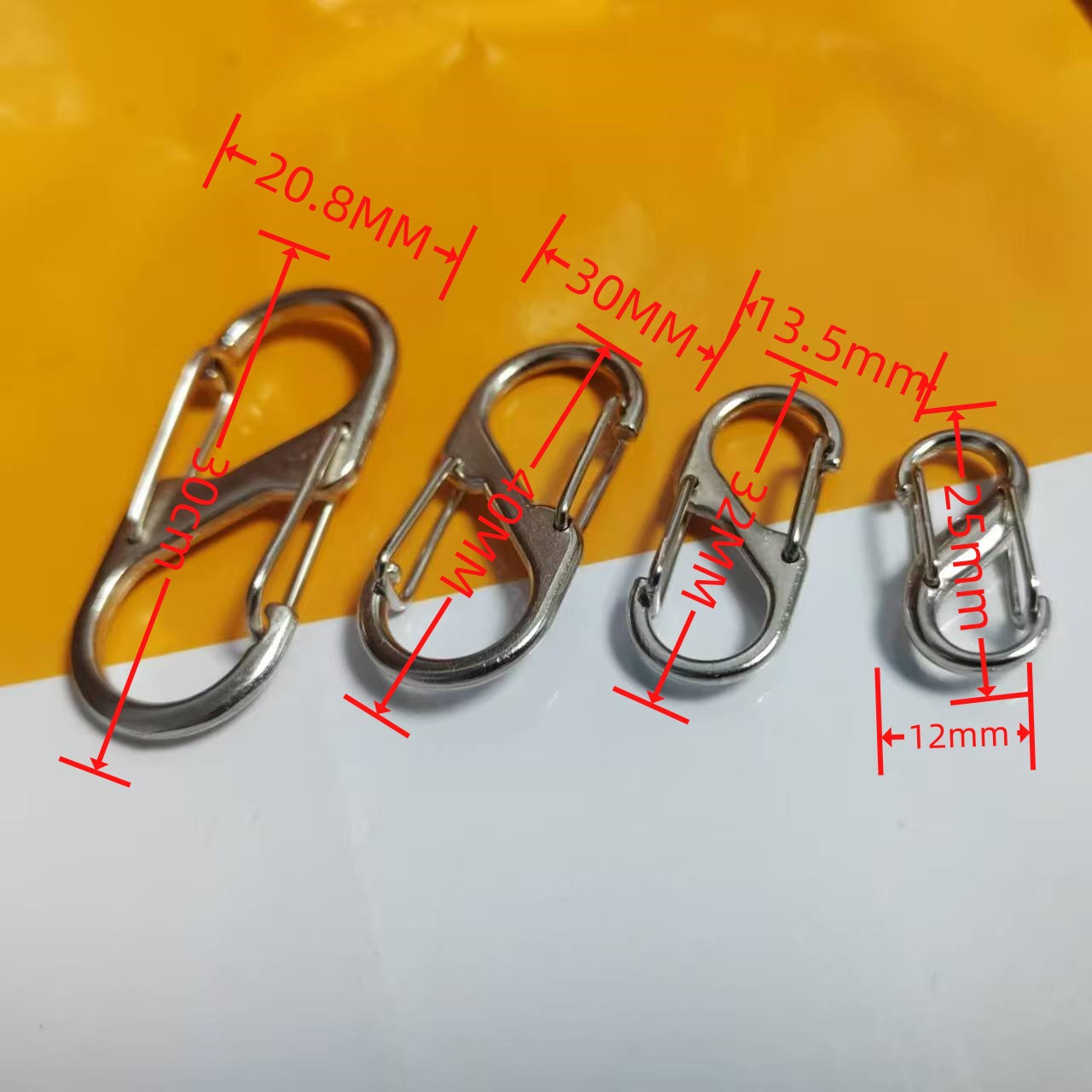 2:挂取方便,设计人性化 这款S钩的设计非常贴心。双头设计让您可以在不同的场合下灵活使用,无论是挂在包包上,还是作为钥匙扣,都非常方便。而且,它的开口设计适中,不会轻易脱落,确保了使用的安全性。