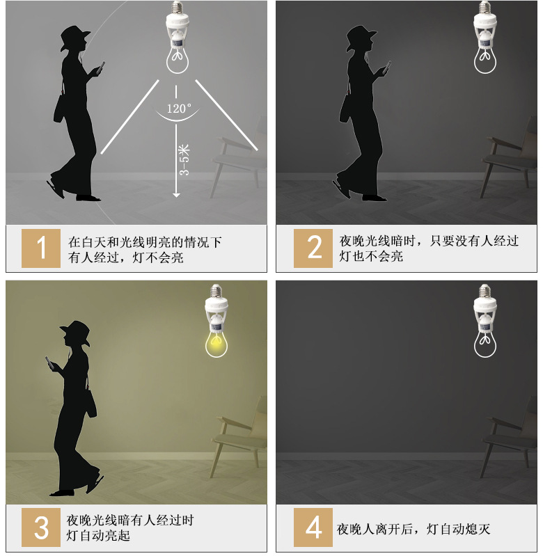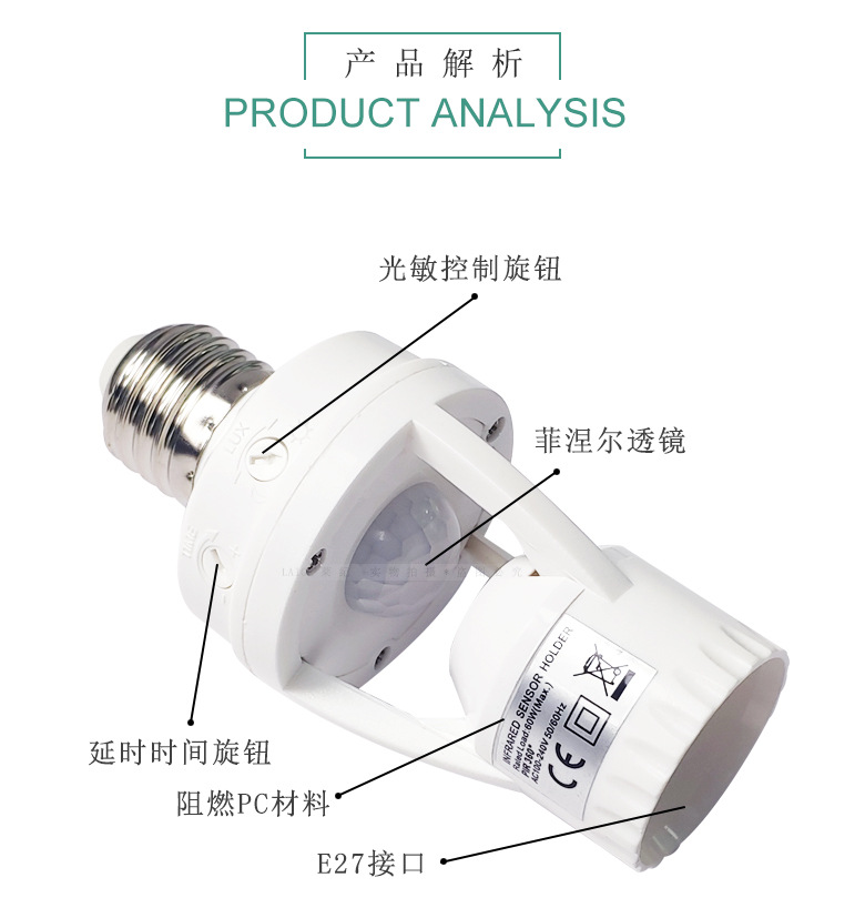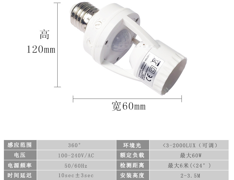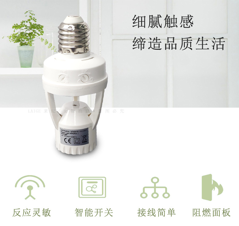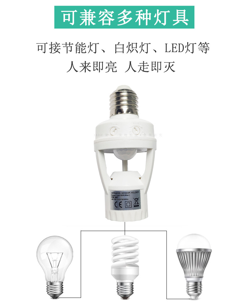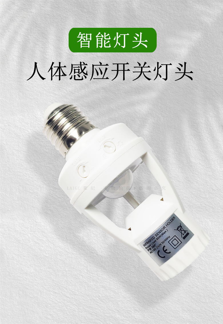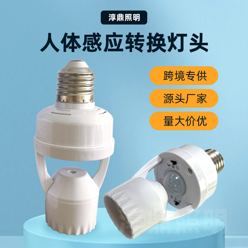 智能人体红外感应转换灯头可调E27螺口人来灯亮雷达感应灯座灯饰