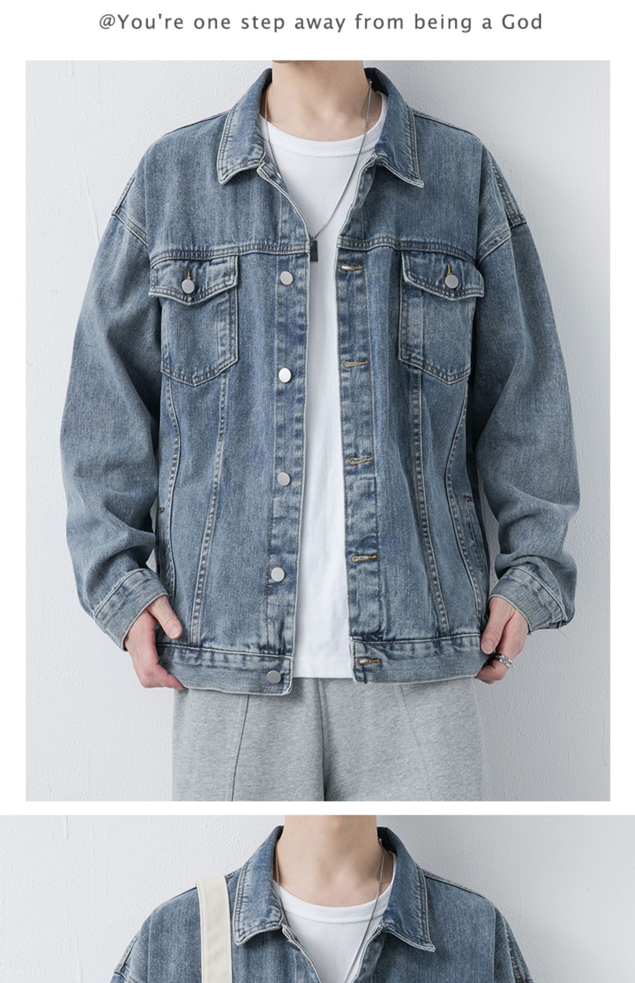 牛仔外套男春秋复古痞帅工装休闲夹克潮牌青少年百搭翻领上衣