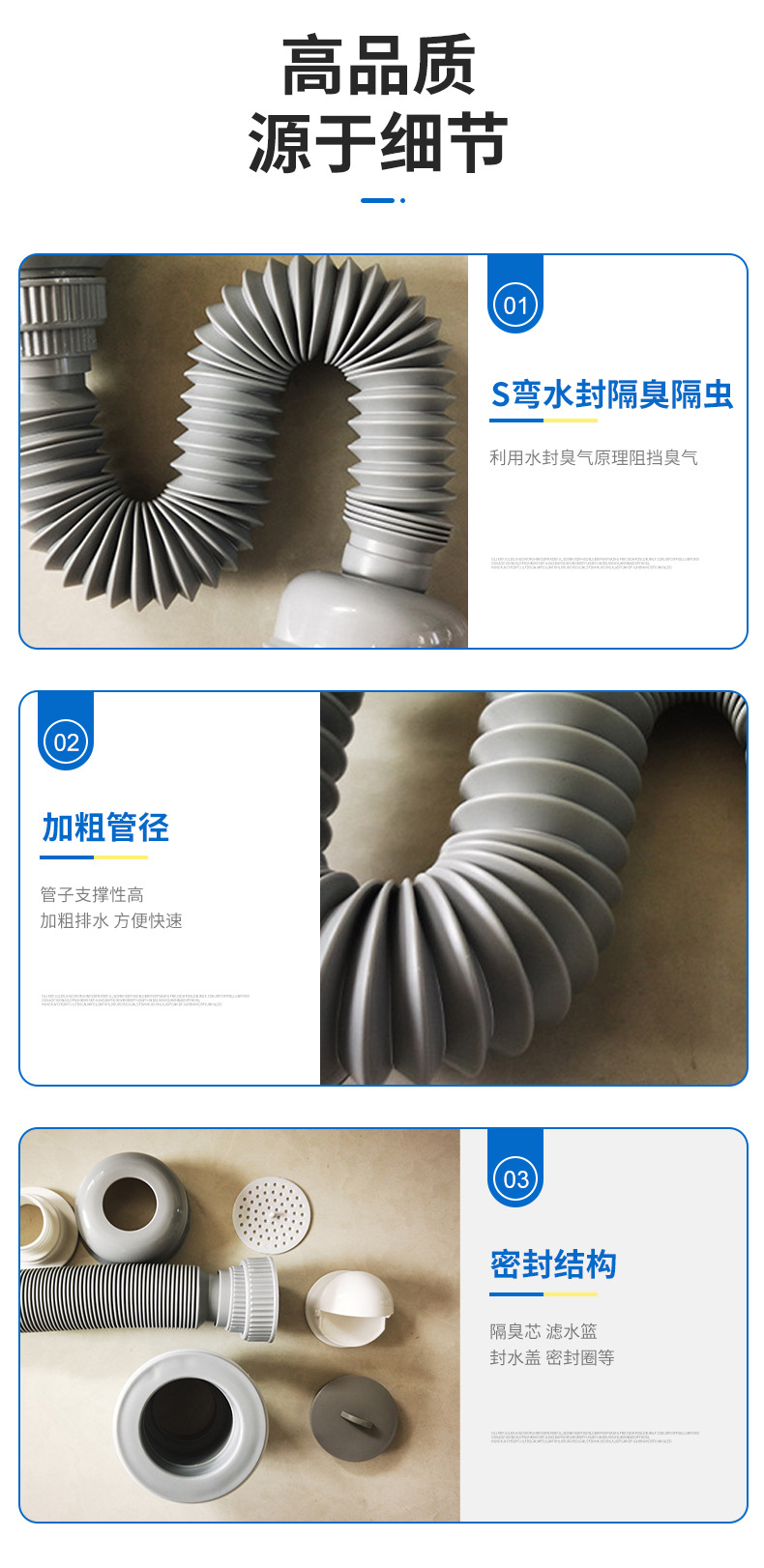 防臭防反味洗手盆下水管胶头管三用下水管菜盆下水管面盆下水管