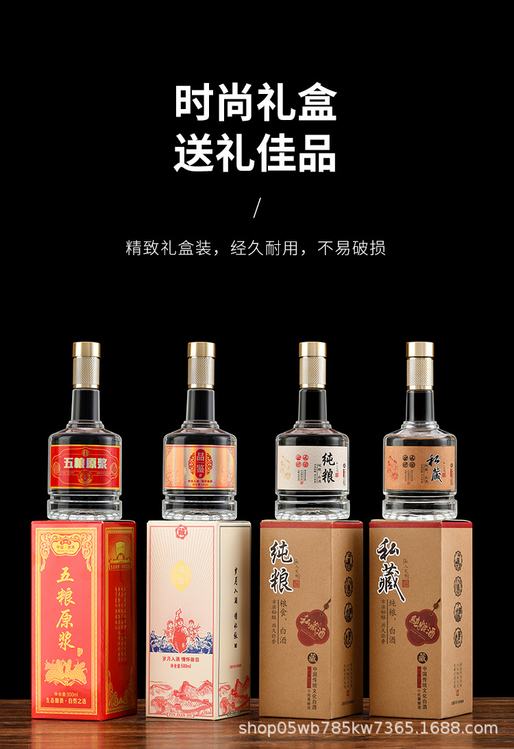 卸売 高級感のある白酒瓶ギフトボックス 空瓶 0.5kg個入り 厚手透明ガラスカップセット ラベル付き