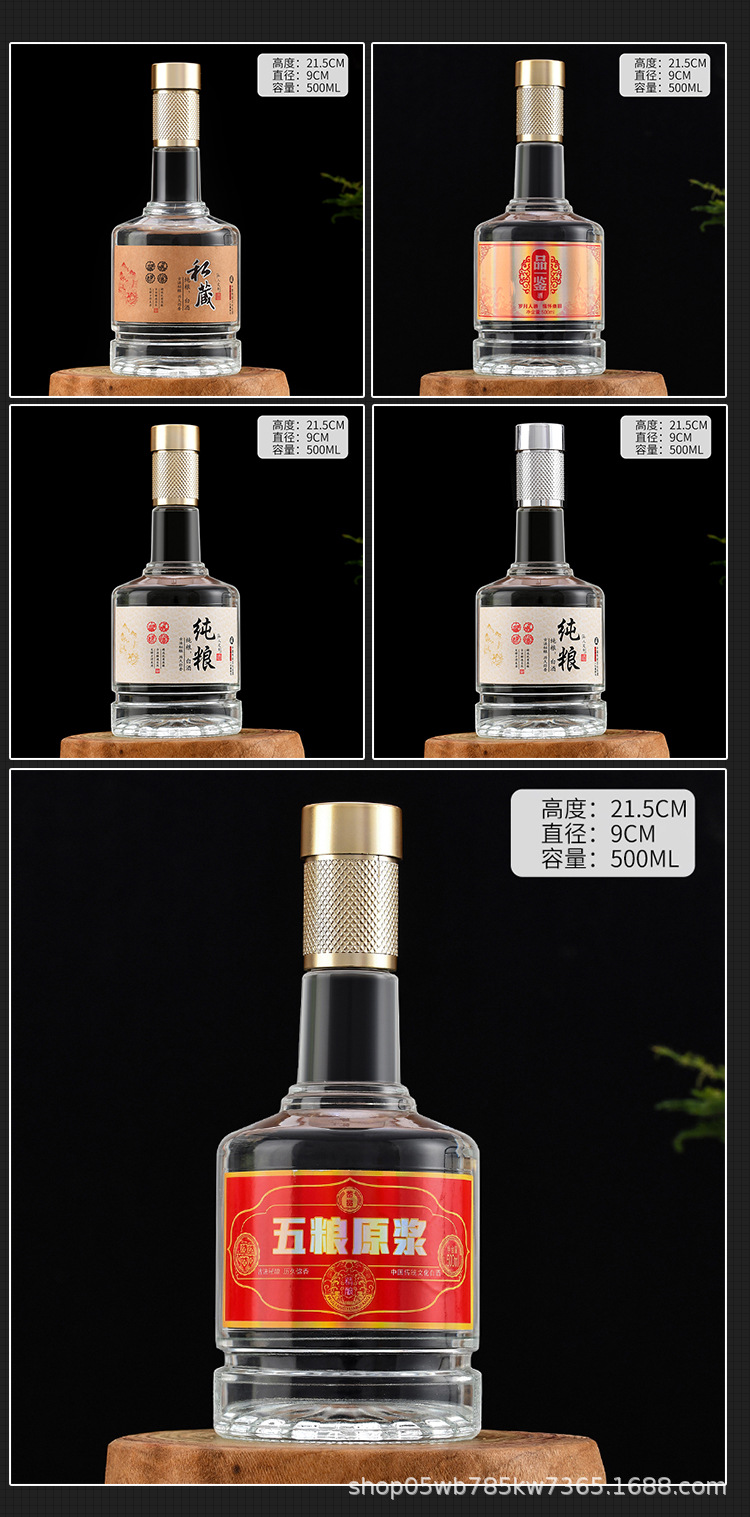 工厂批发高档玻璃酒瓶500ml空酒瓶加厚白酒瓶全套酒瓶包装分装瓶