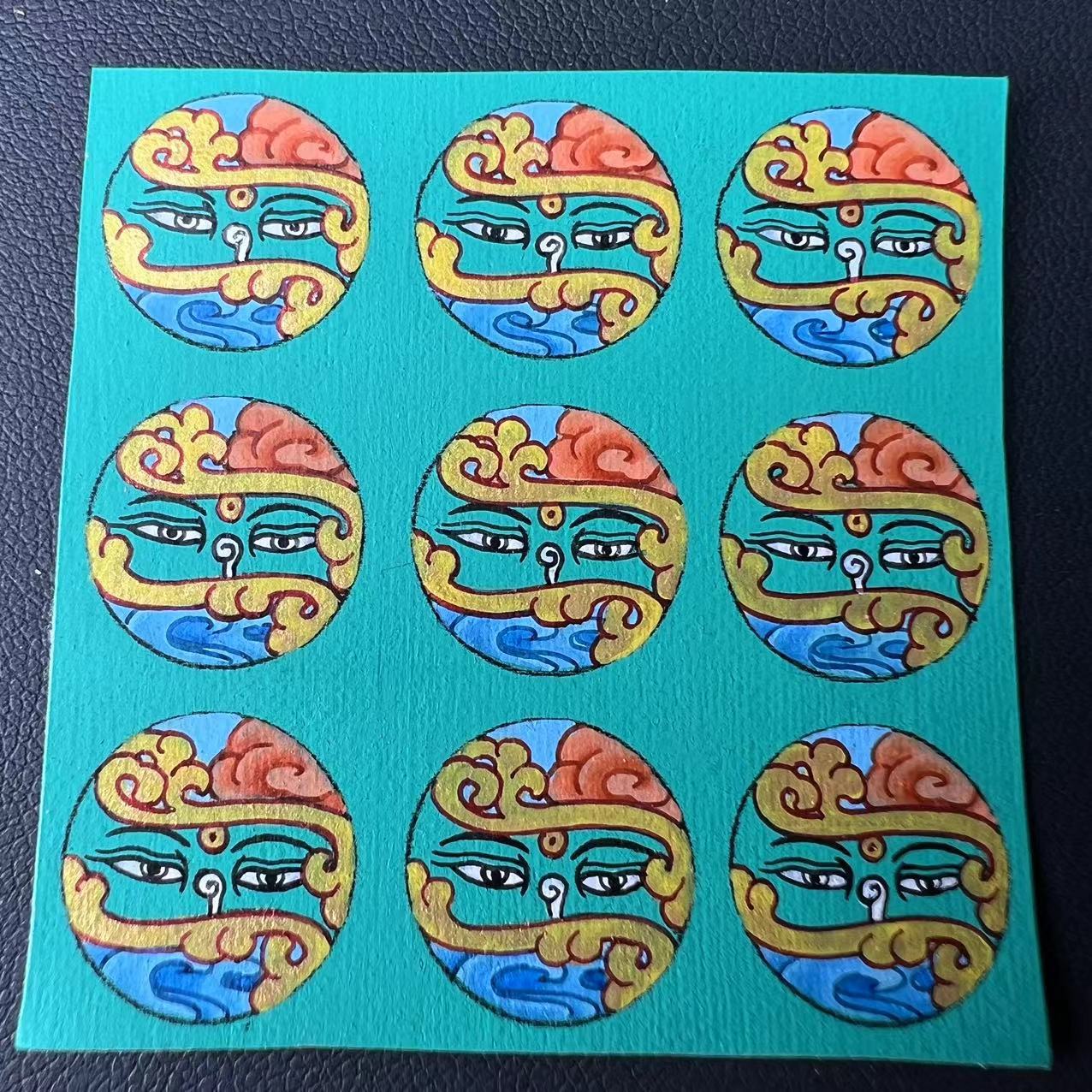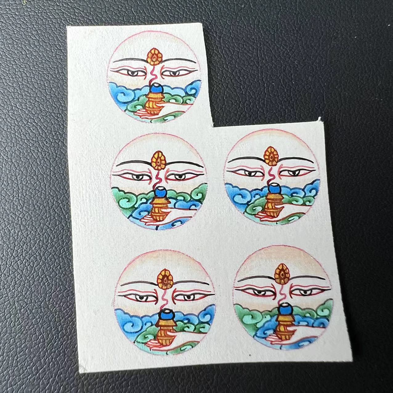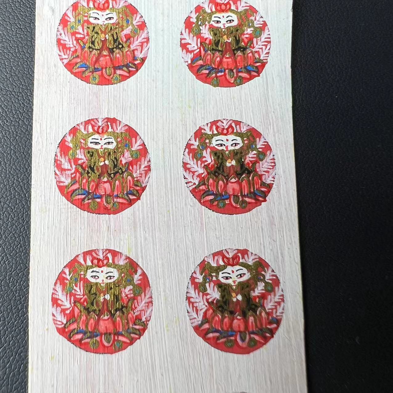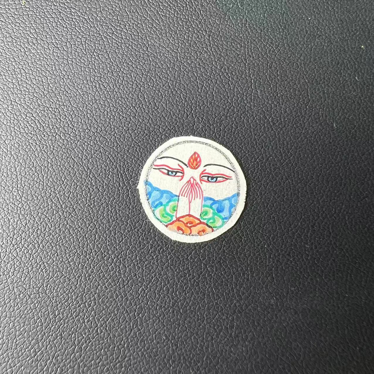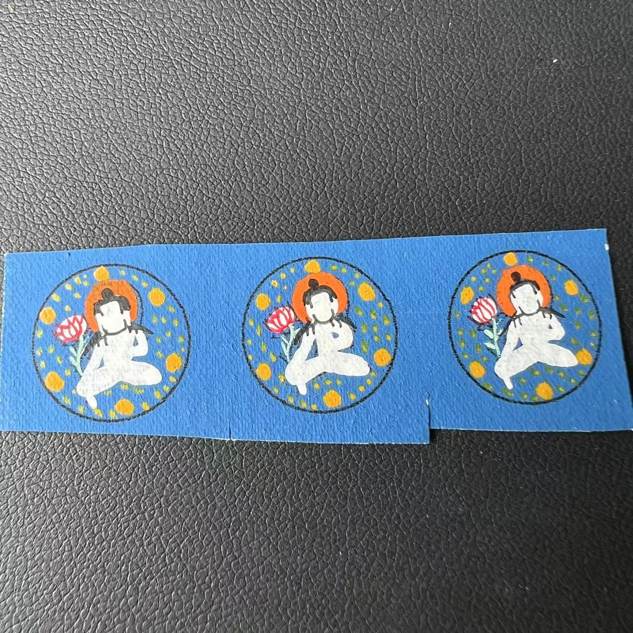 尼泊尔纯手绘唐卡扎基拉姆粗矿砂凸金唐卡4*5CM画芯卡芯