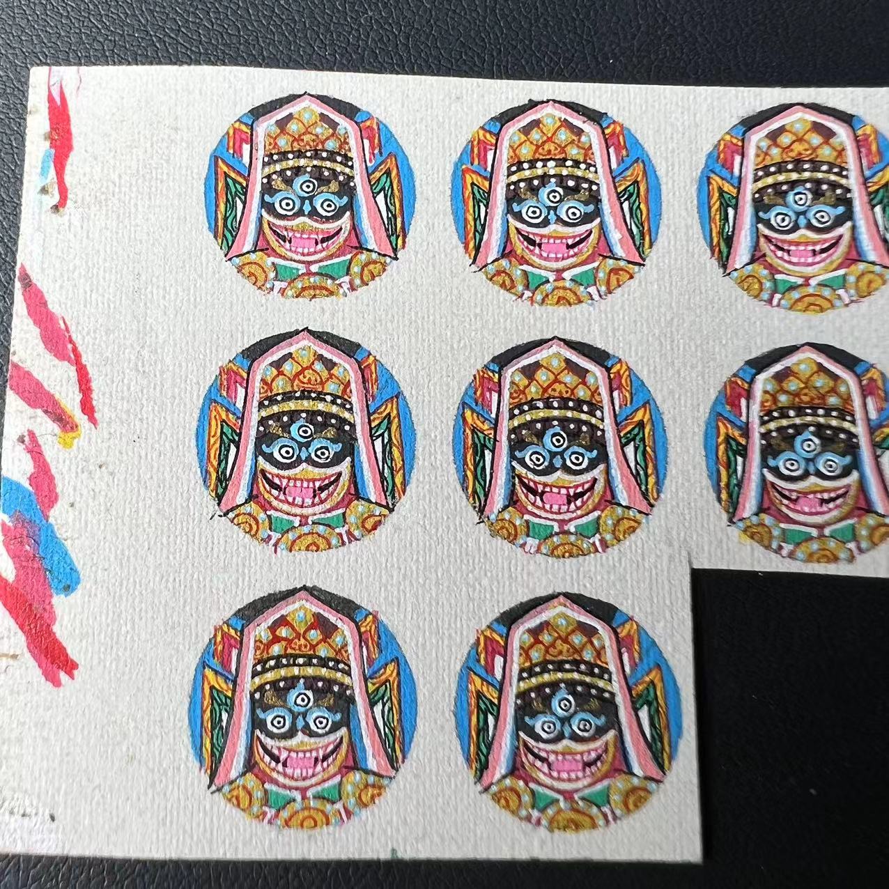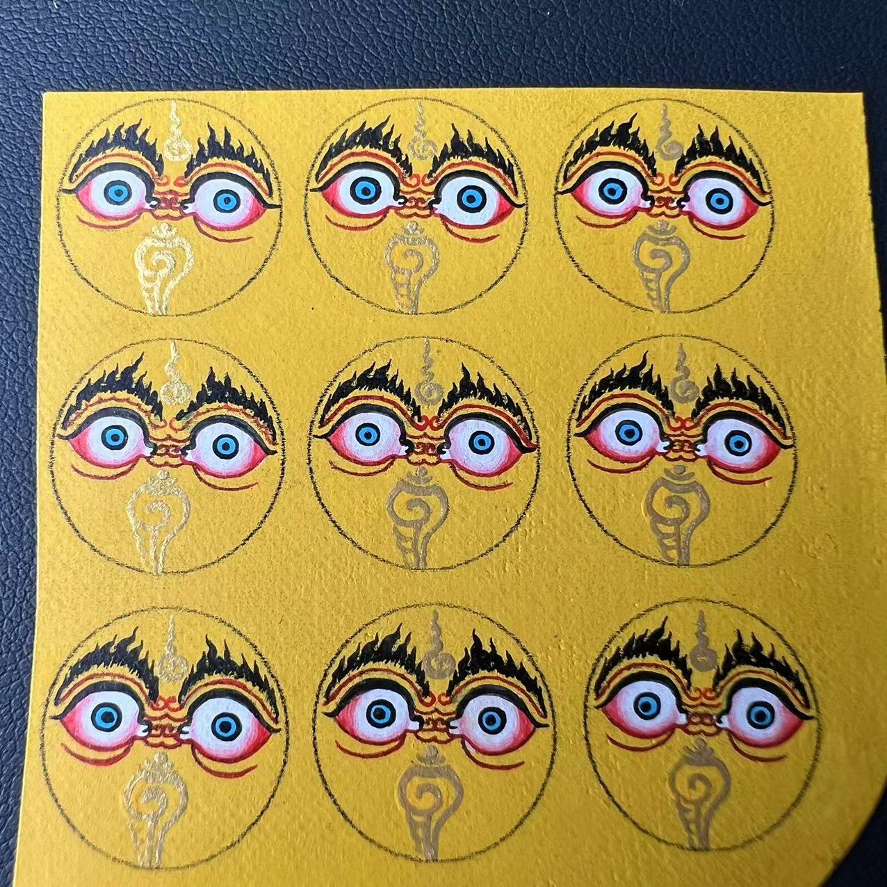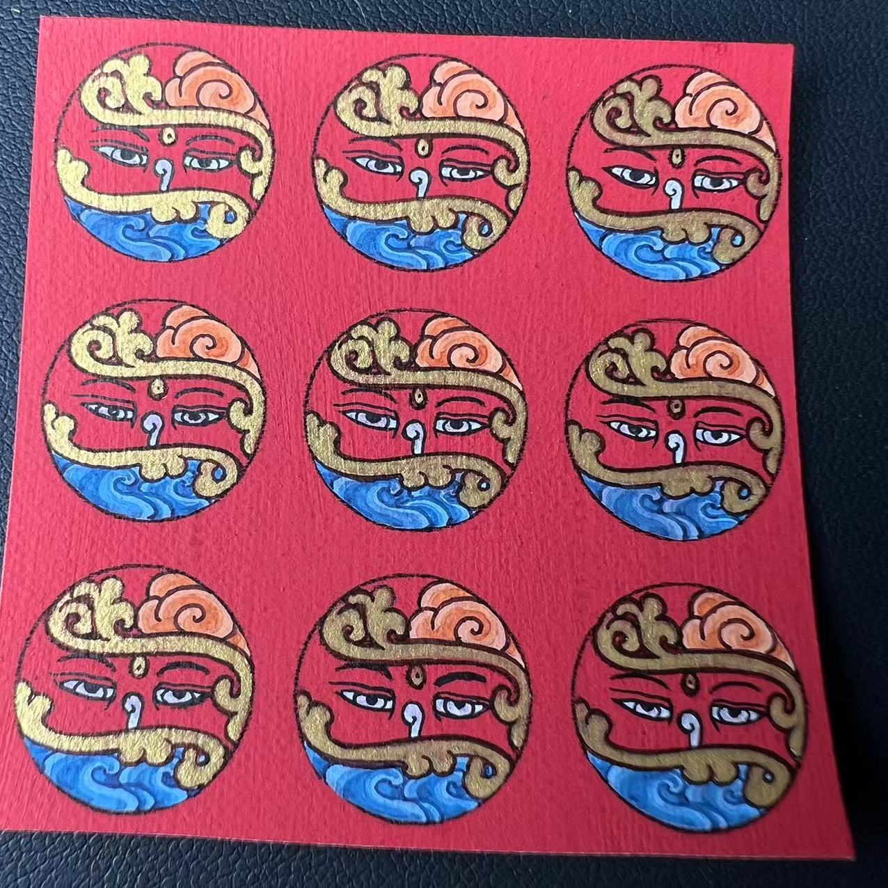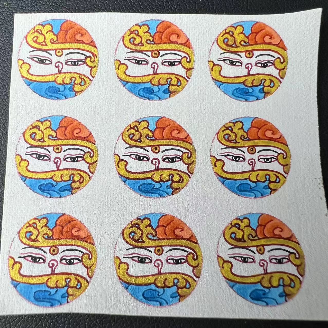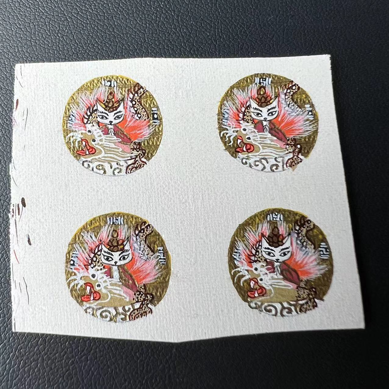 尼泊尔纯手绘唐卡扎基拉姆粗矿砂凸金唐卡4*5CM画芯卡芯