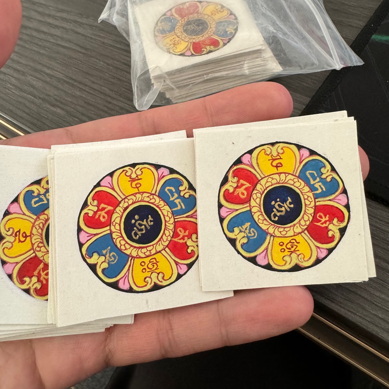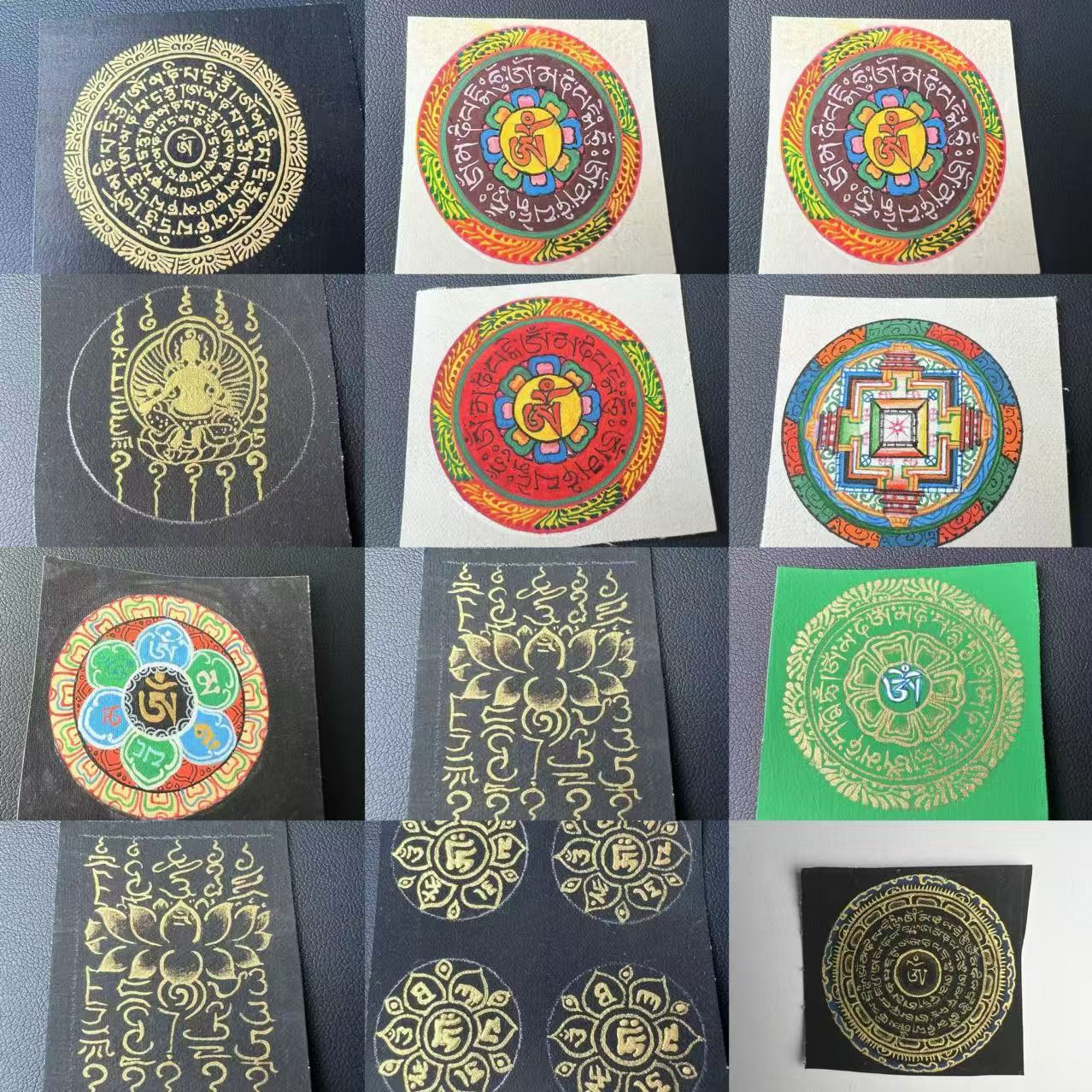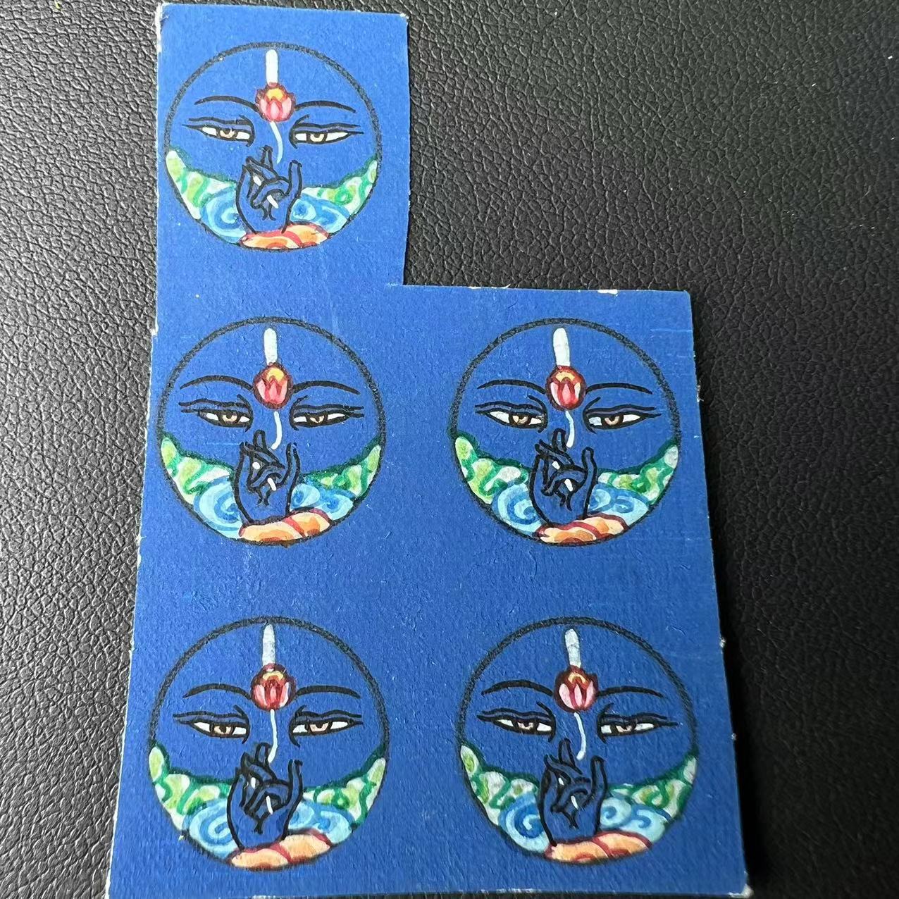 手描き鉱物顔料壇城黒金五条経文唐カード六字真言カード芯画心3.5円小唐カード