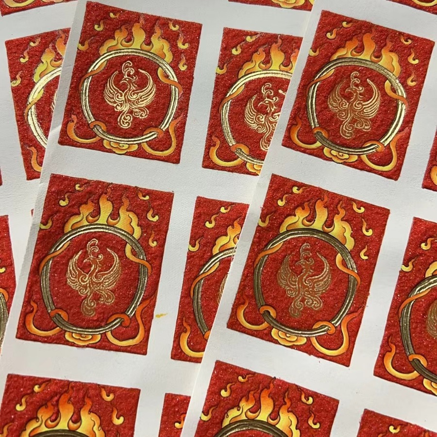 手描き唐カード九紫離火方形円形唐カード心画芯粗鉱砂赤色鳳凰唐カード