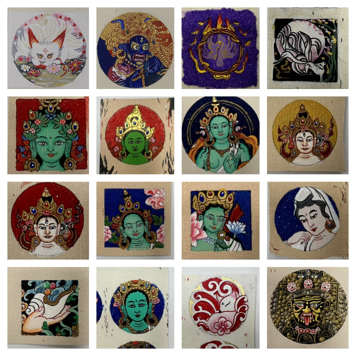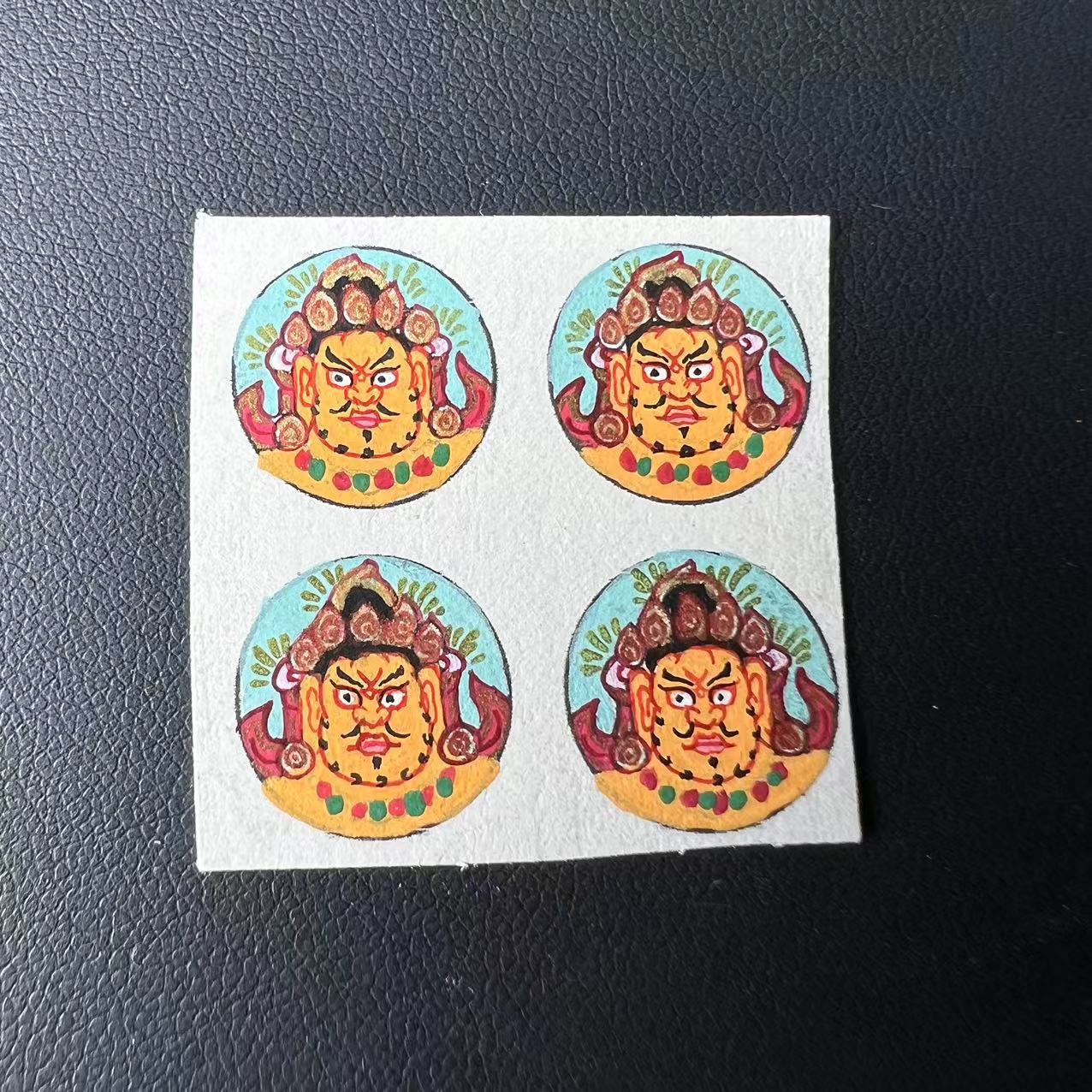 純手描き唐カード青海熱貢カード芯画心蓮落花生財宝天王白六腕薬師仏壇城ペンダント