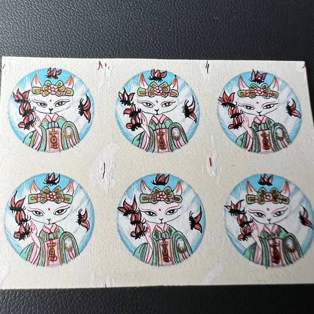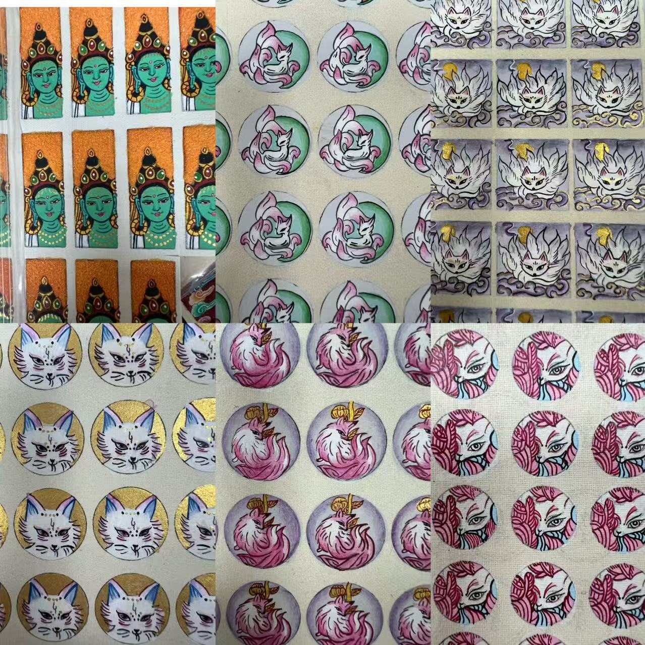純粋な手描きの鉱物の顔料の唐カードの1.5カードの芯の絵の心の小さい円の唐カードの心のザキラムのキツネの大鵬の鳥