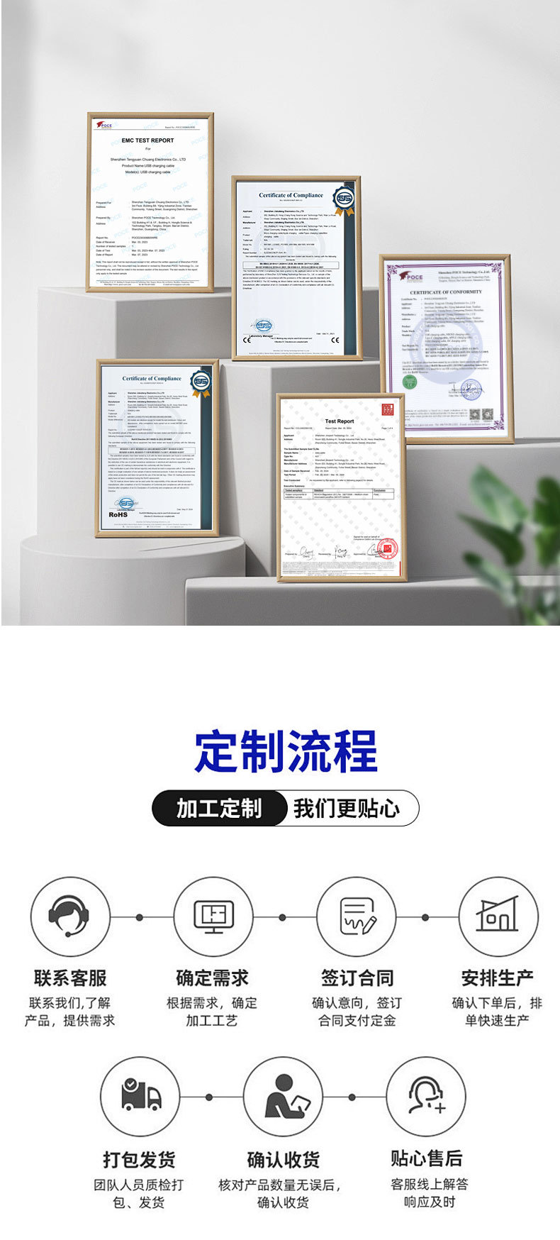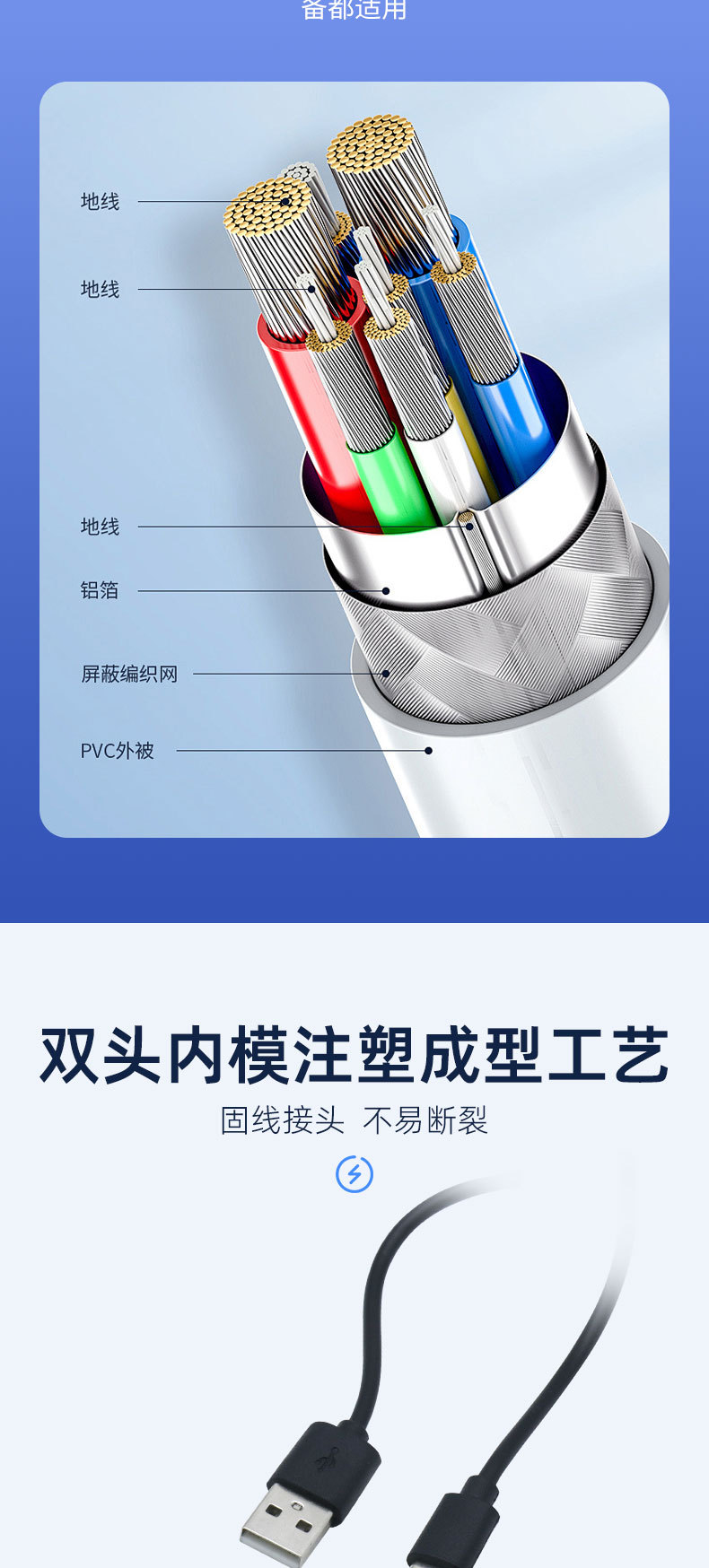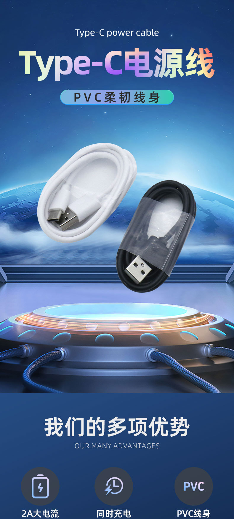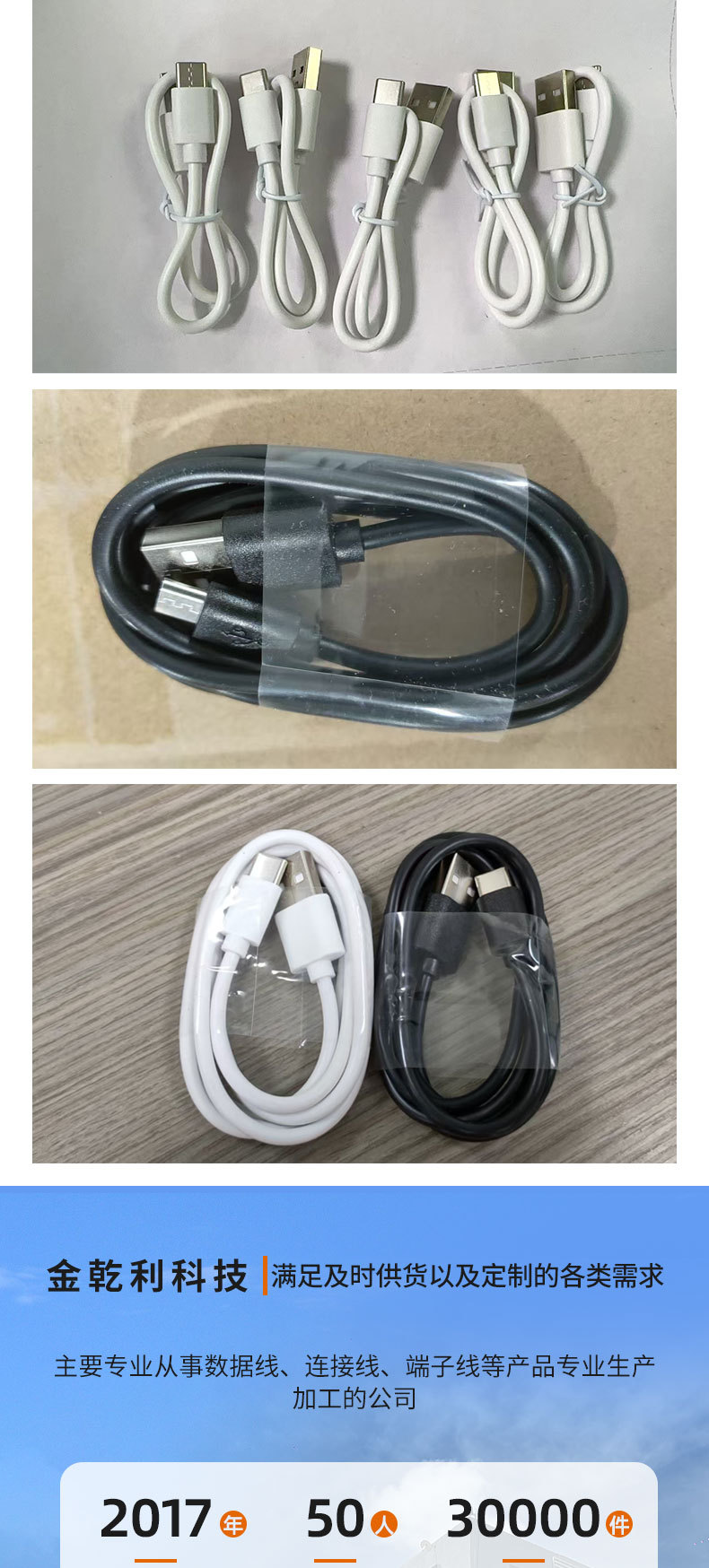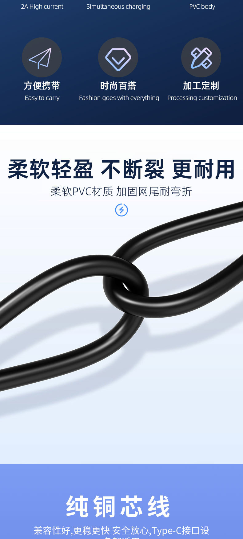 规格: 有30,50,100Cm,纯铜铜丝,PVC材质,2芯充电功能,铜丝规格有12支0.10*2,43支0.08*2,17支0.15,26支0.15等等,黑白色,可以订制TPE,尼龙编织材质等, PD线可以定制3芯充电功能,5芯充电加数据功能