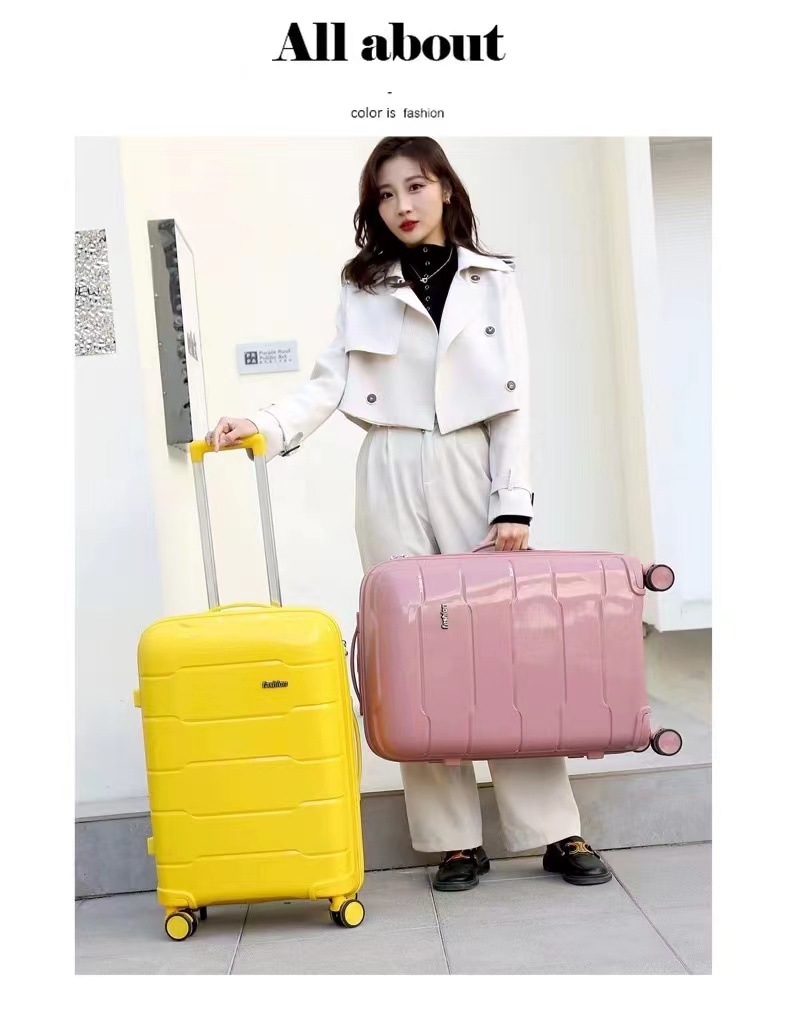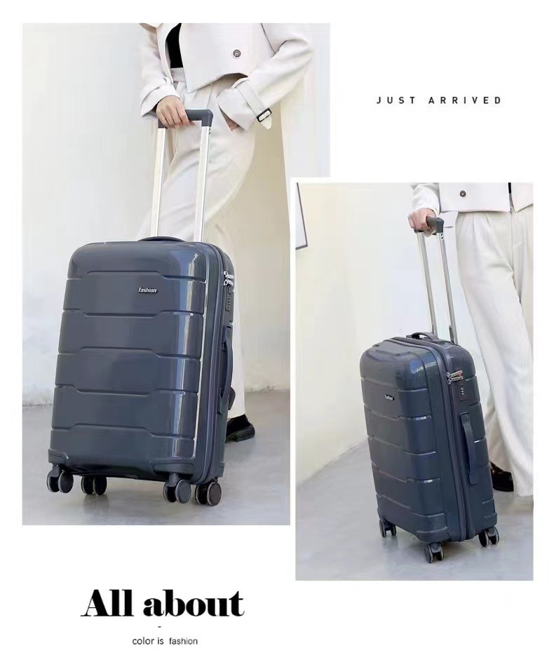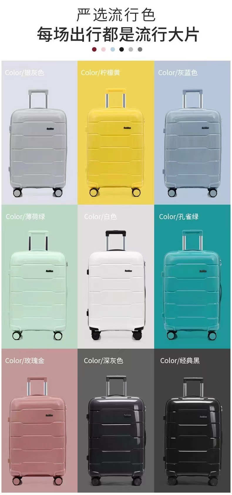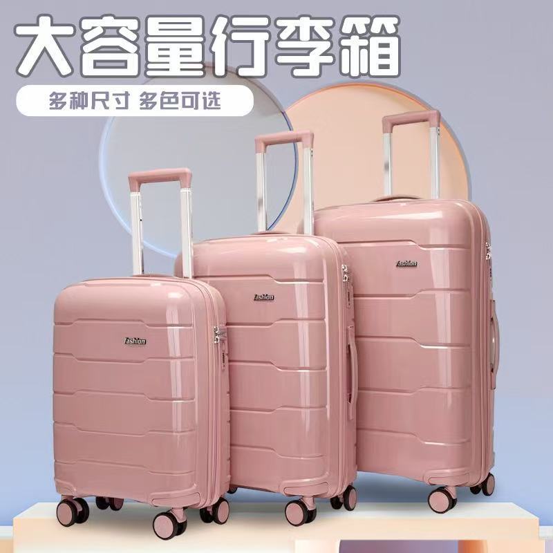 新款pp材质大容量行李箱休闲出行万向轮拉杆箱密码锁旅行箱批发