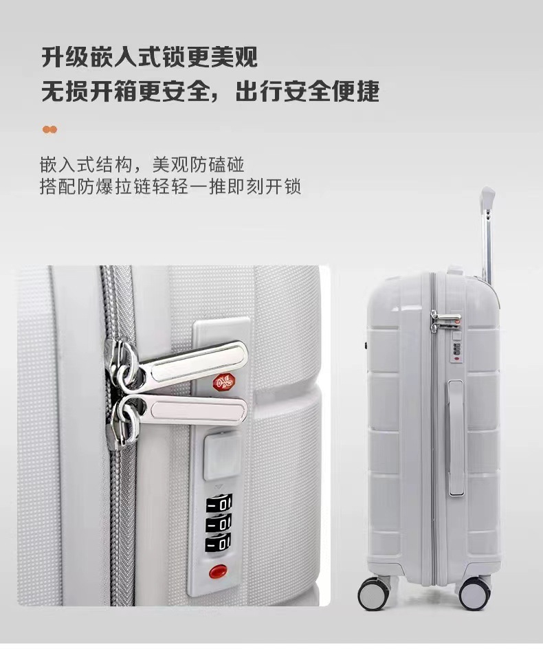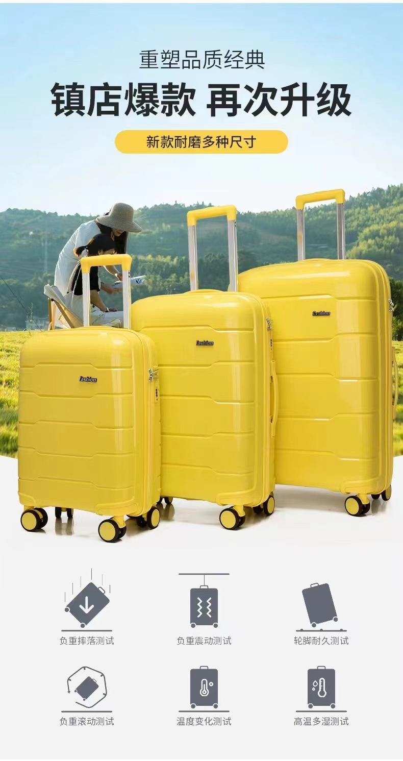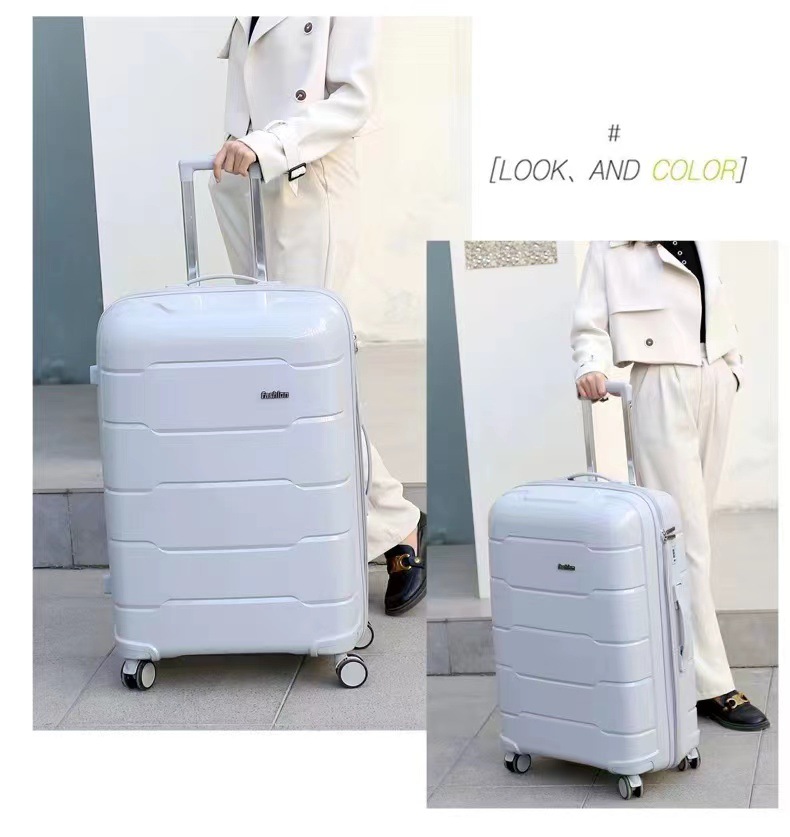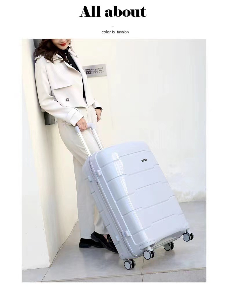 新款pp材质大容量行李箱休闲出行万向轮拉杆箱密码锁旅行箱批发