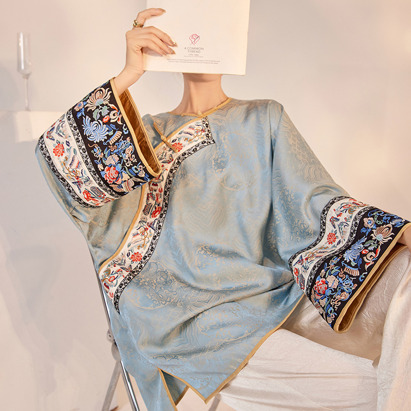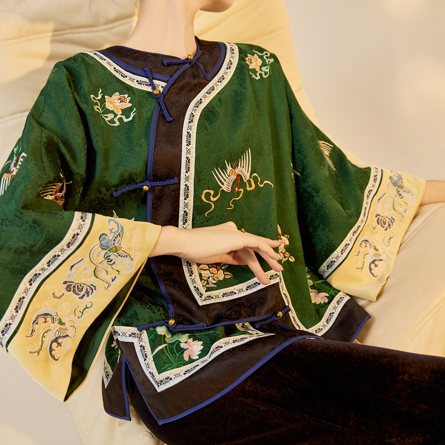 新中国式国風新型高級ゆったり版型ファッション刺繍プリントデザイン感酢酸コート女性M8034