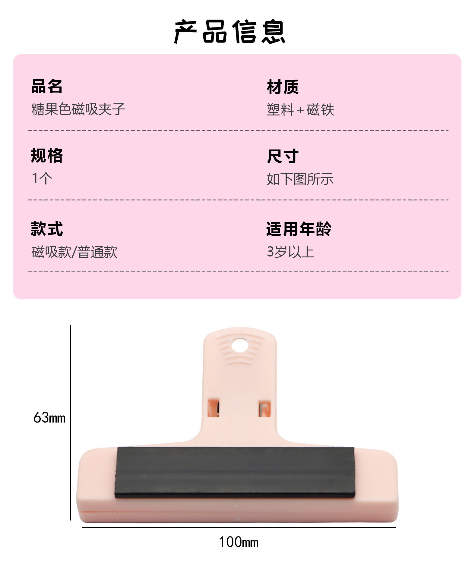 马卡龙色夹子学习办公磁吸长尾夹可挂收纳夹文件试卷固定器便签夹