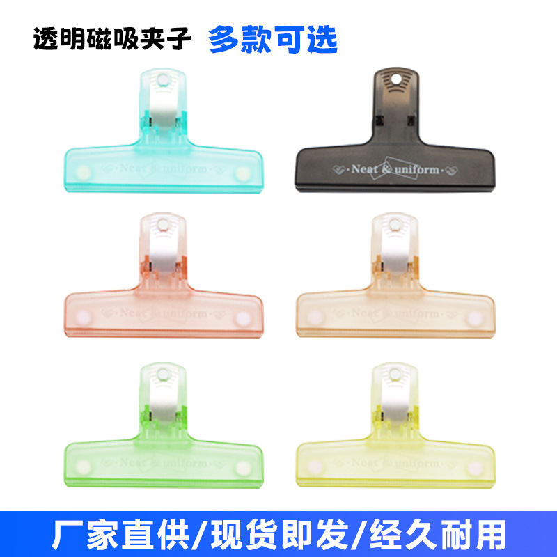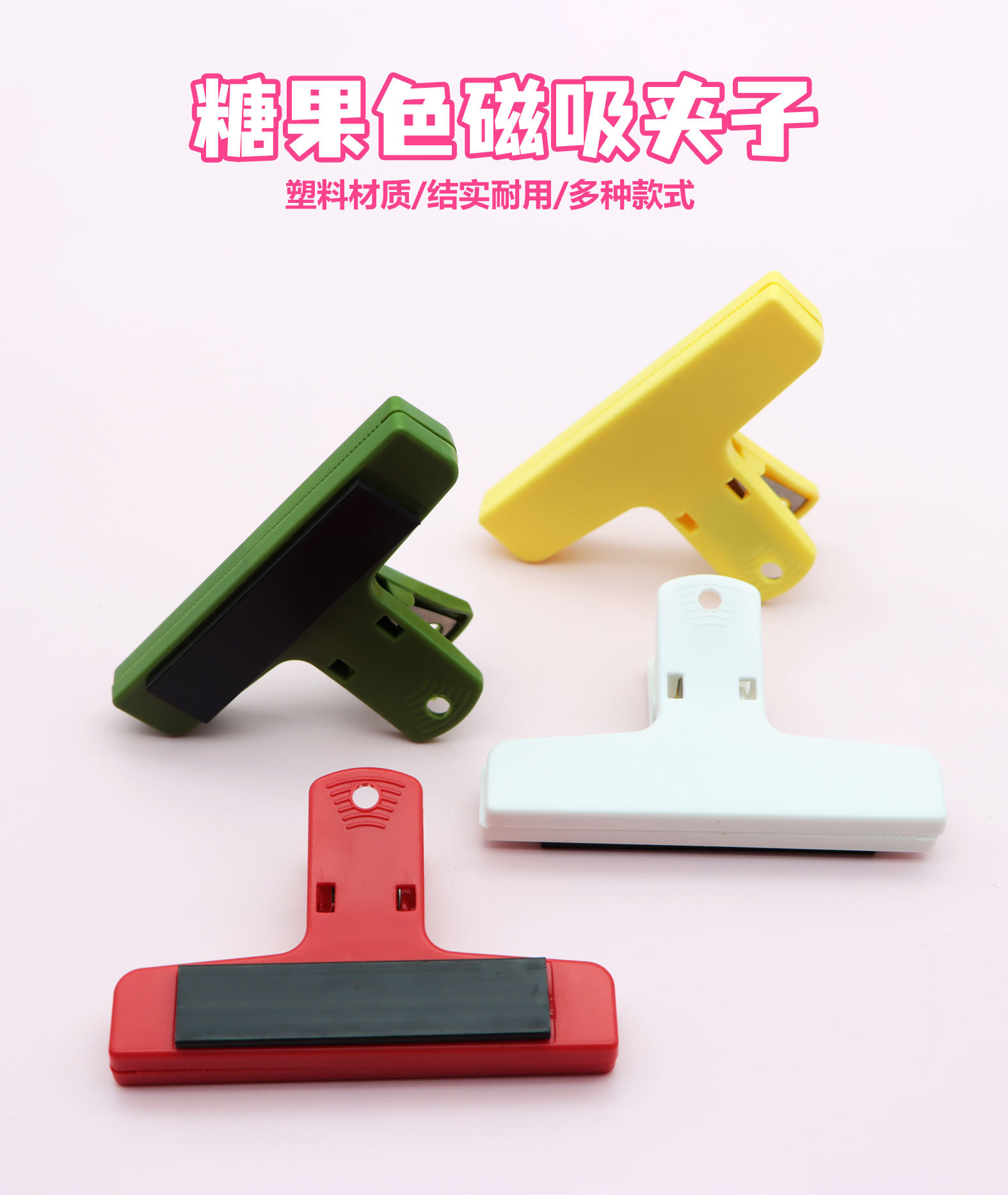 磁吸夹现货彩色塑料磁力夹手账夹办公票据学生试卷文件夹子长尾夹