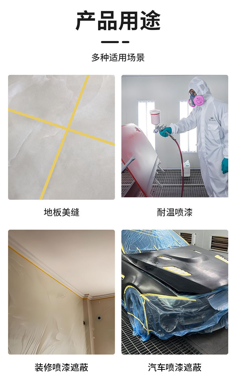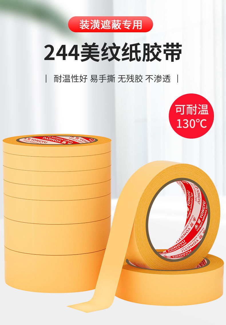 244美紋紙黄色高粘色紙と紙美紋紙50メートルカーテンウォール保護接着剤エポキシ床塗料