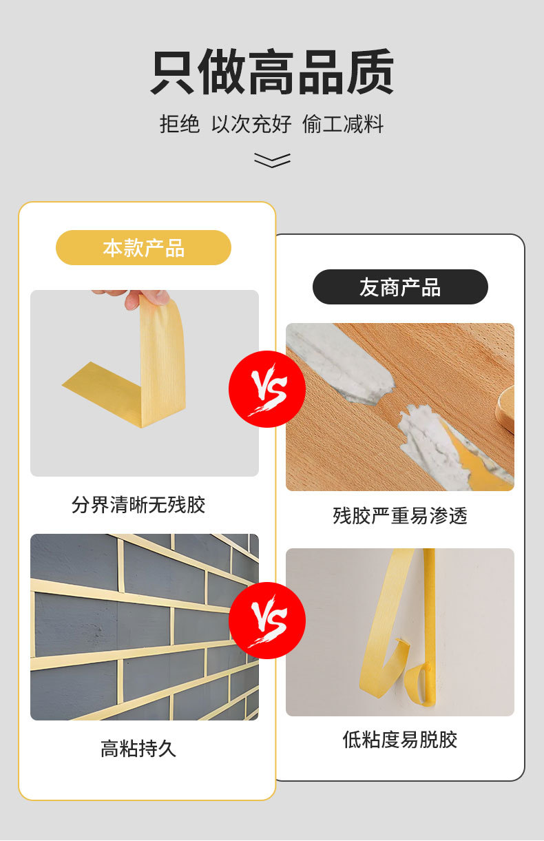 白色美纹纸胶带高粘性墙面装修喷漆遮蔽美纹纸不留胶易手撕分色纸