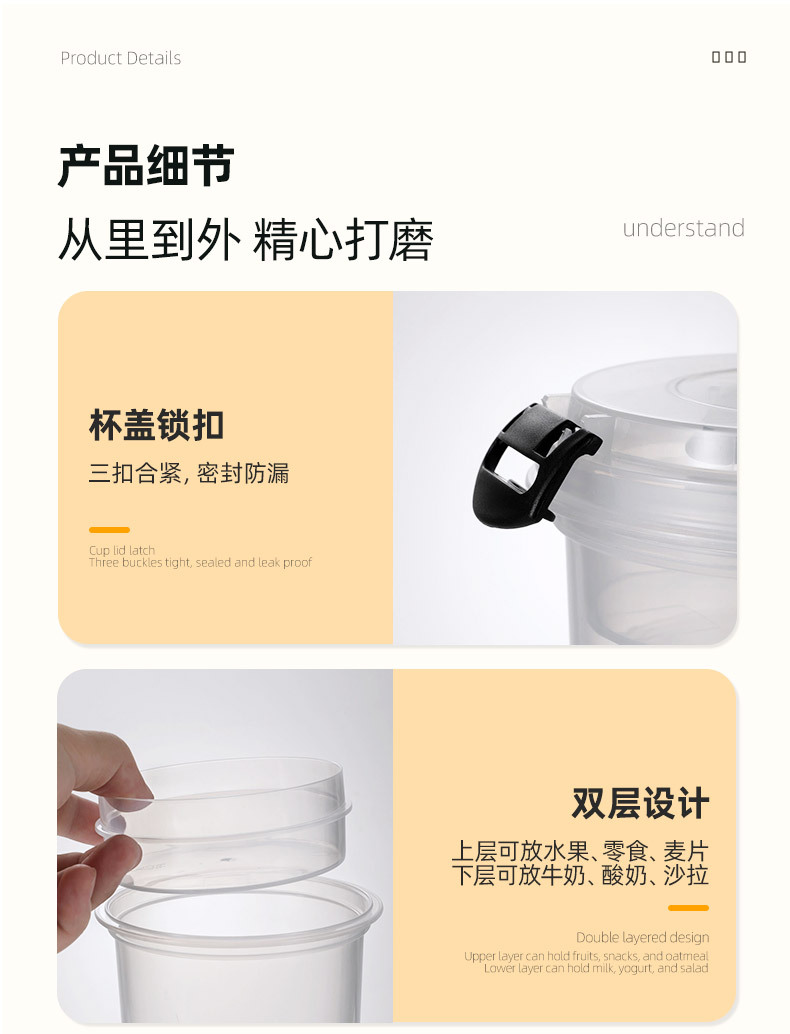 燕麦杯外带双层酸奶可麦片塑料杯子便携带盖早餐杯沙拉微波赵烛优