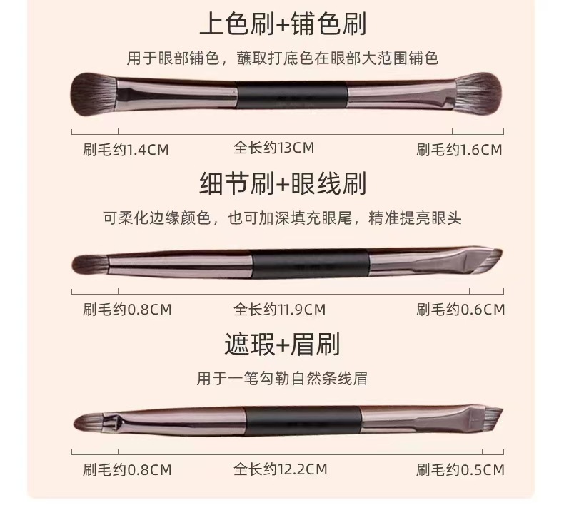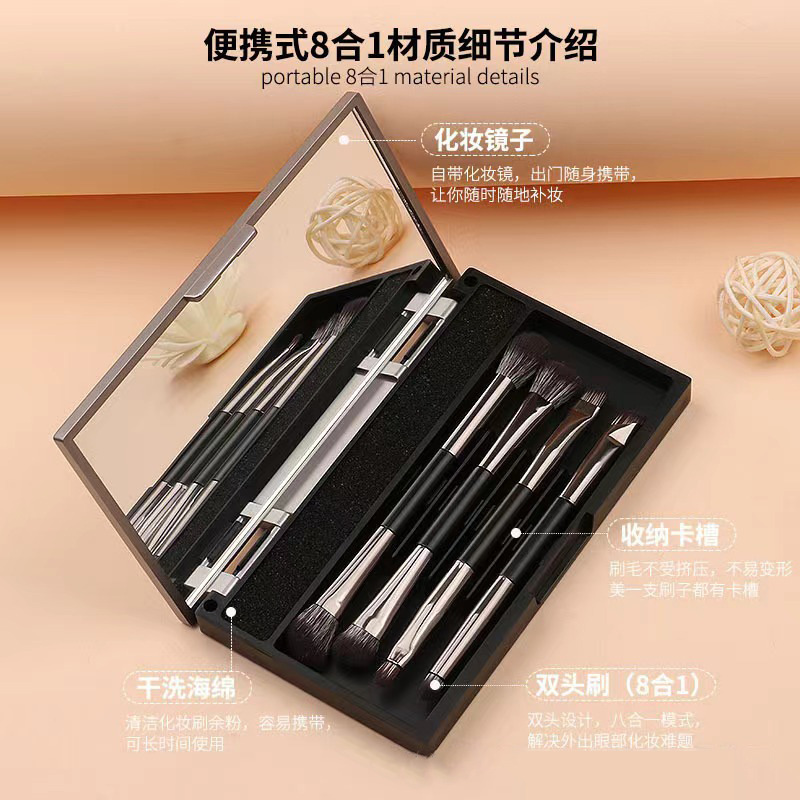 二折叠7支折叠化妆刷套盒双头粉底刷修容刷眼影刷鼻影刷点彩便携