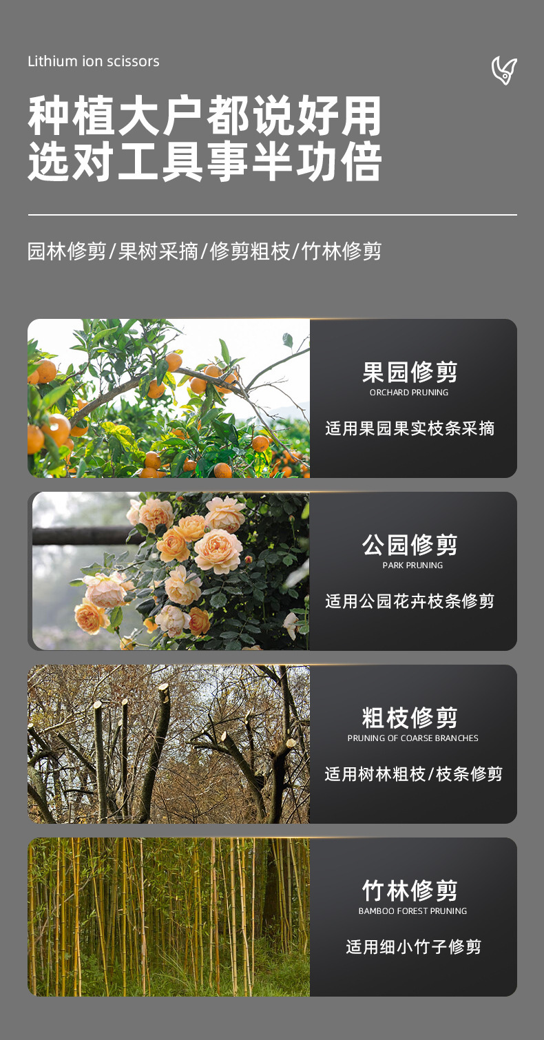 新型大口径電動ハサミ園林電動剪定果樹粗枝電気はさみ屋外無線携帯電気はさみ