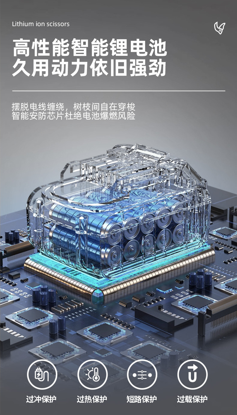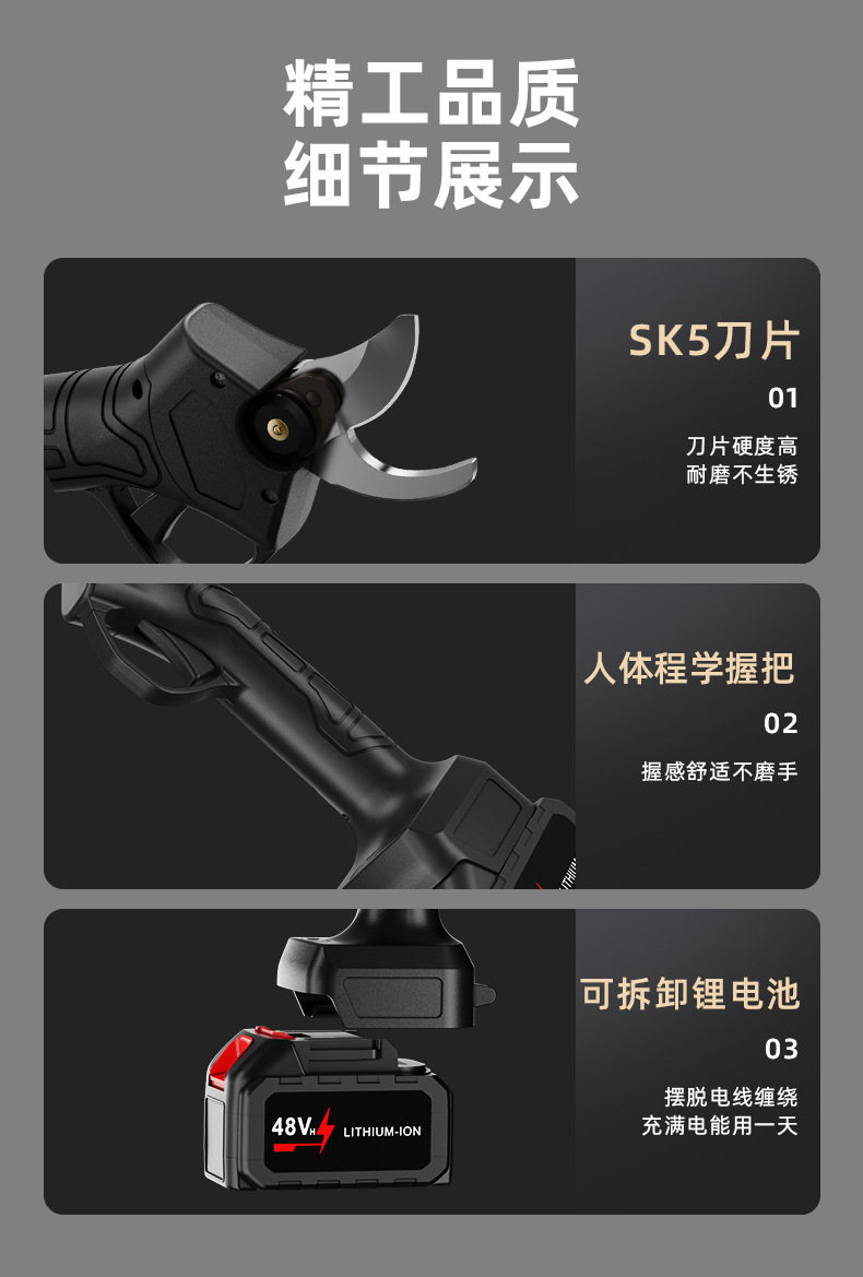 跨境款碳钢刀头电动修枝剪刀锂电修剪园林电剪刀批发3.0电剪刀