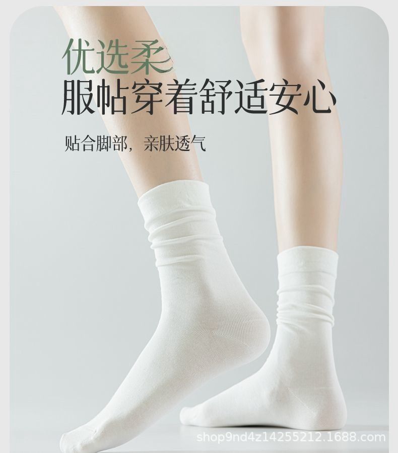 靴下の女性の中筒の積み重ねの靴下の夏の薄いタイプの白いins春秋の純色の中筒の靴下の長い筒の月子の靴下は骨がありません。