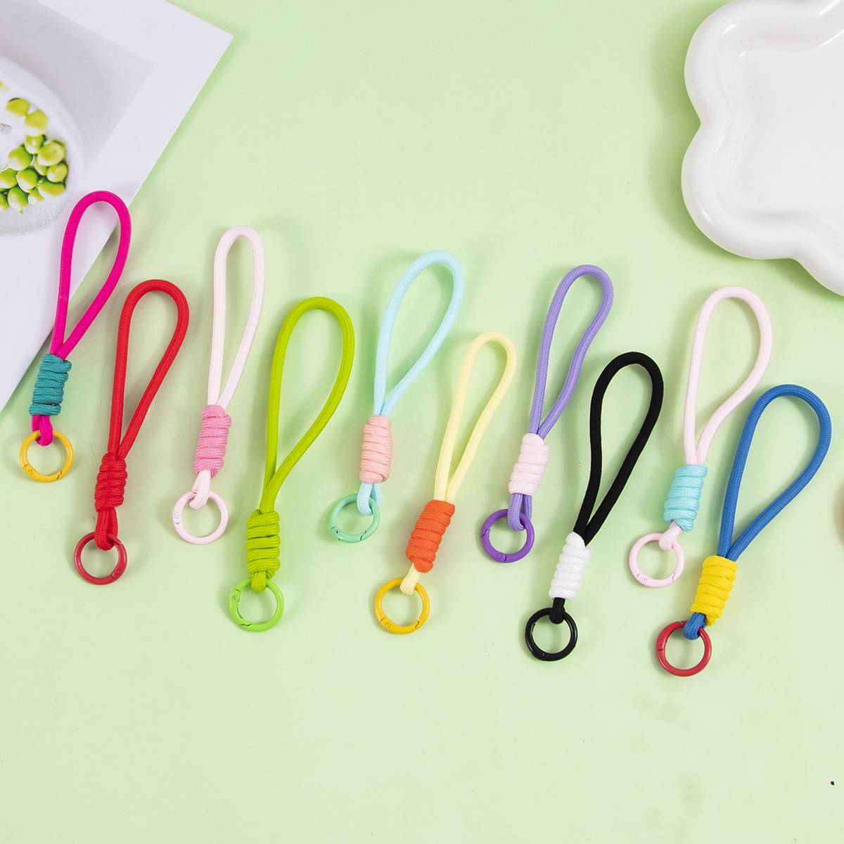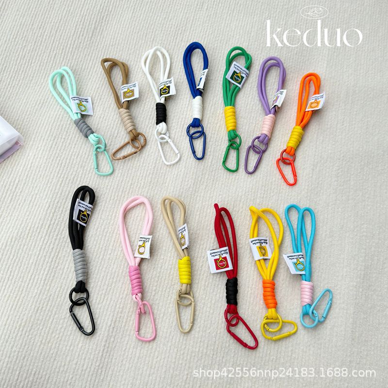 拼色手机挂绳短款加粗打结编织手腕绳毛绒钥匙扣挂绳防丢绳挂饰