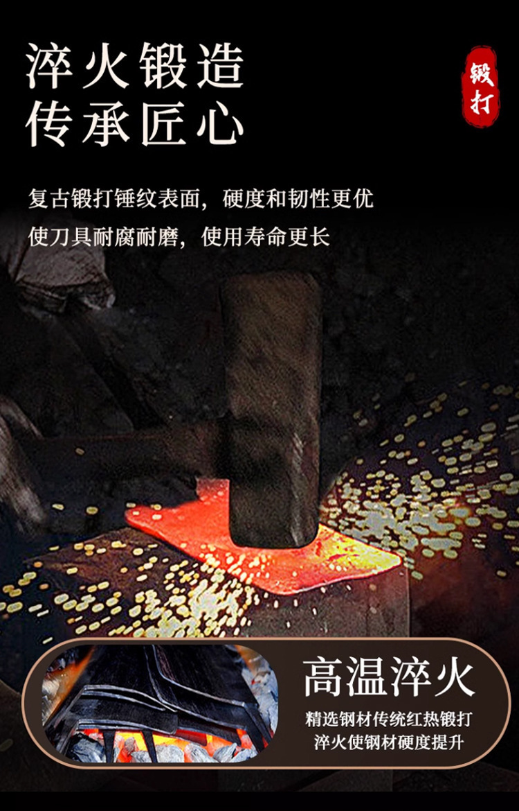 手で鍛錬して骨刀を切ります。料理人専用の包丁は豚の牛や羊の大骨を厚く切って骨を切ります。