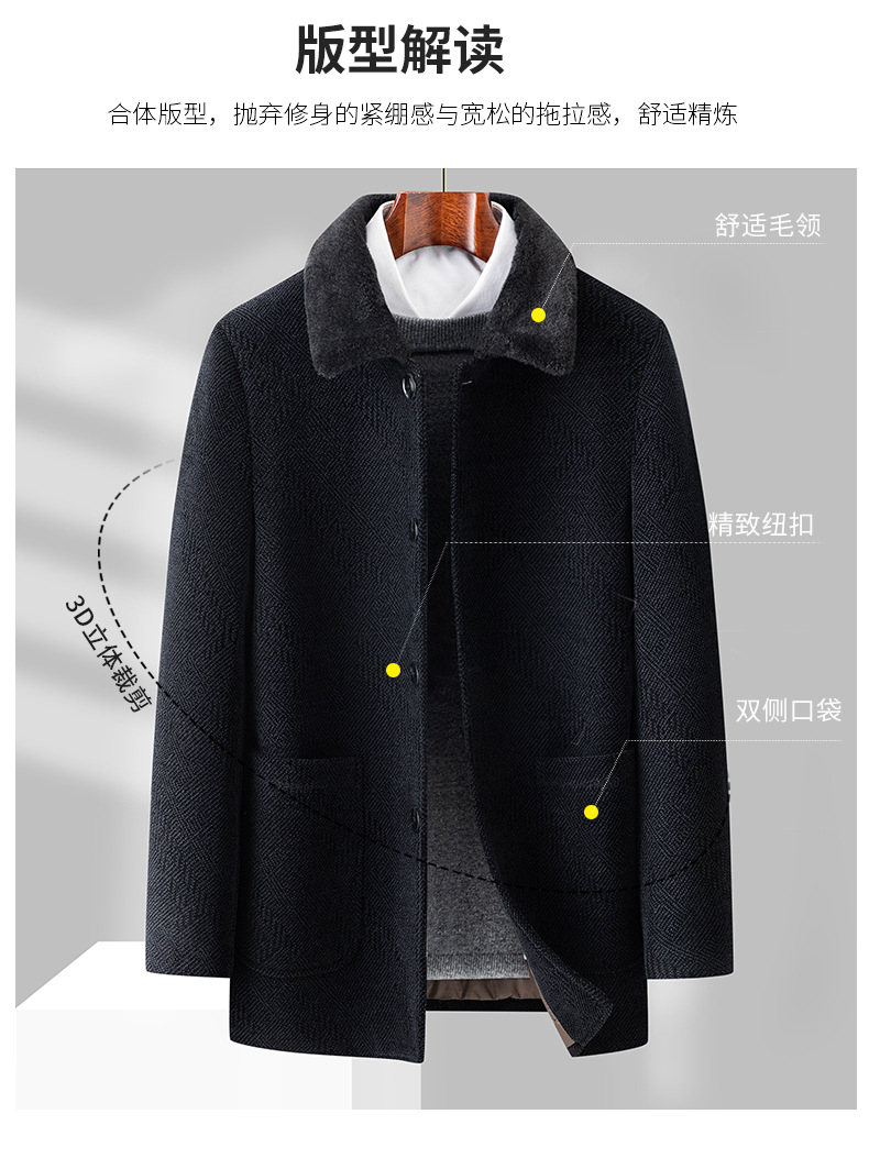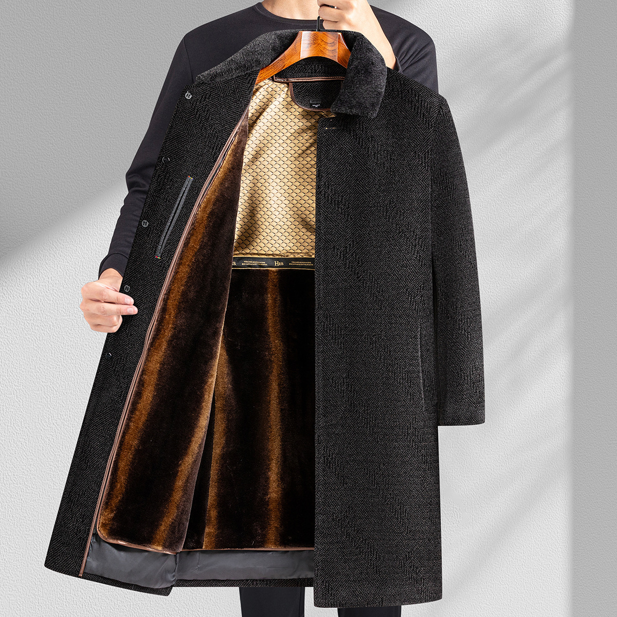 2024年クロスボーダーは男性の英倫の中の長いウールのラシャのコートの上着の男性服を提供します。