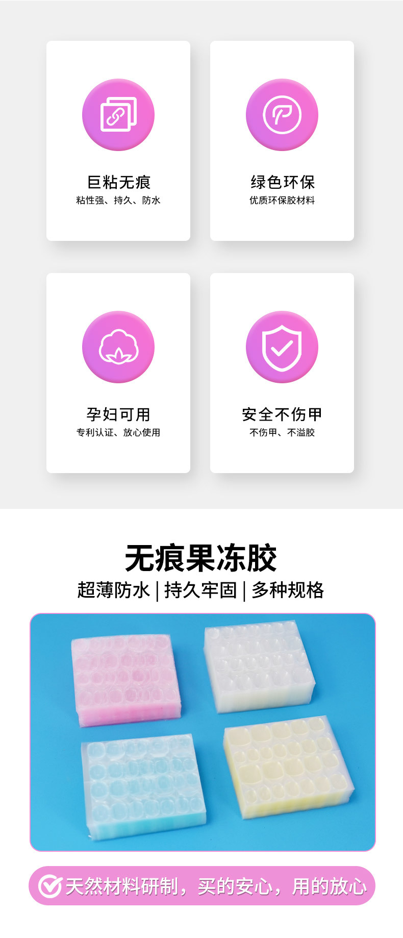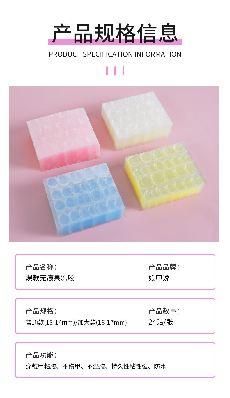 新バージョンのピンクの薄いウェアラブルネイルゼリー両面テープウェアラブル接着剤透明ゼリー接着剤は爪を傷つけず、透明で取り外しが簡単です